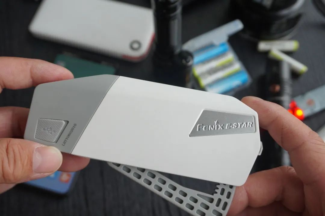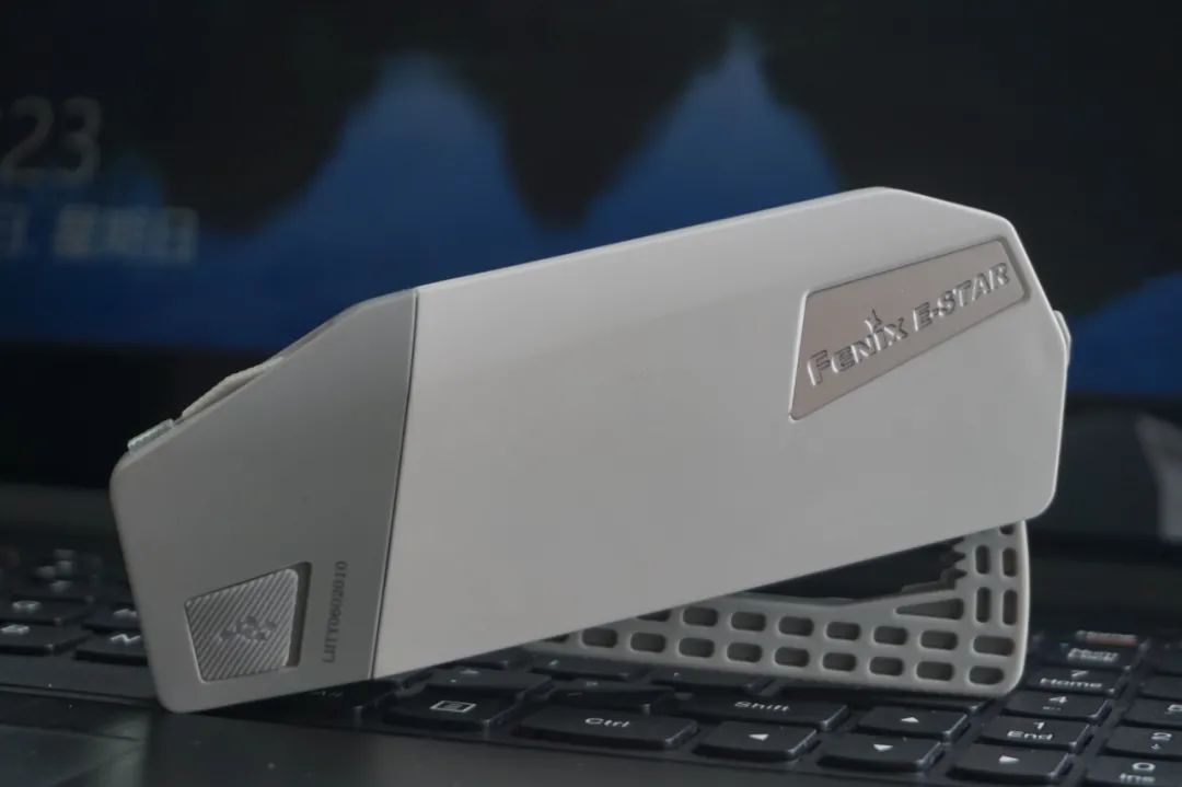 一款好的產(chǎn)品離不開好的設(shè)計(jì)。顏值方面,從我接觸的手電當(dāng)中很少見到長扁造型灰白撞色設(shè)計(jì),E-STAR確實(shí)優(yōu)秀。頭部灰,中部白,尾部E-STAR金屬銘牌銀,三色融合相互點(diǎn)綴而成。手電外殼采用ABS工程塑料制造,手柄鏤空輕量化設(shè)計(jì),產(chǎn)品防跌落高度為1米,耐摔性還是沒有問題的。