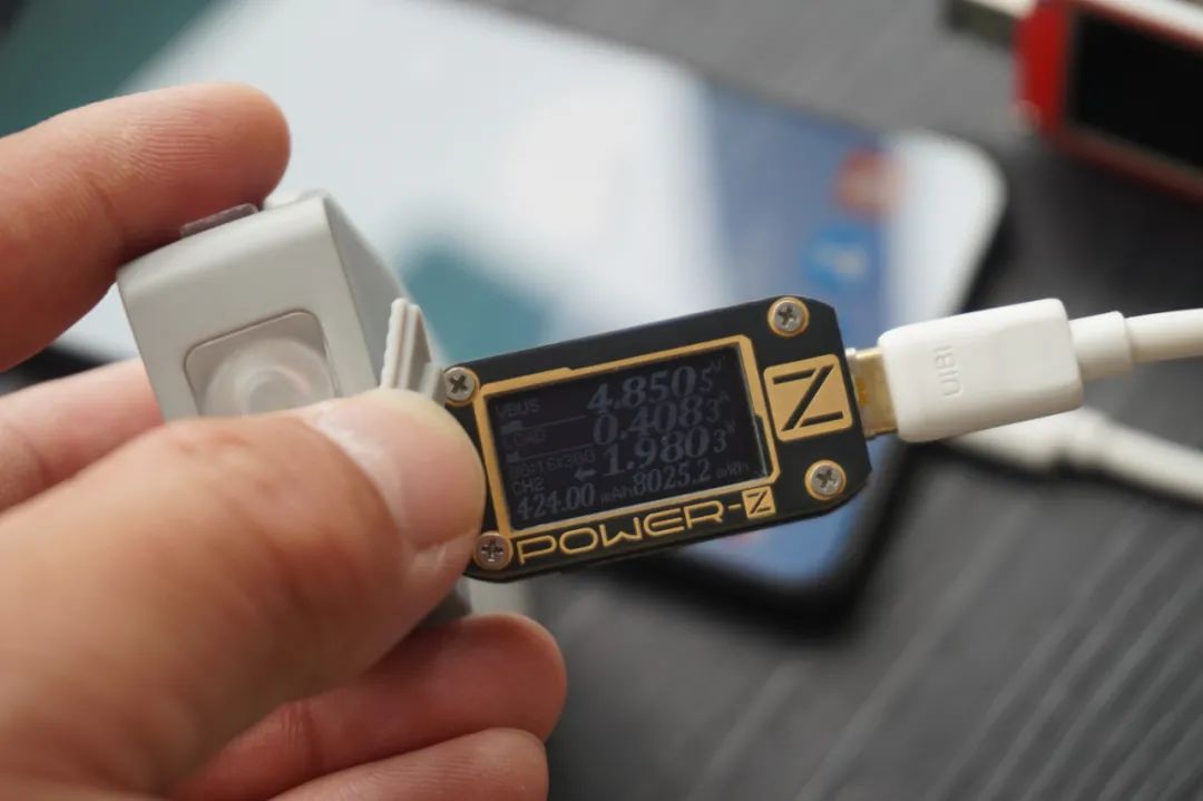 至于充電方面,E-STAR基本不挑充電器,常見的充電器充電寶都可以充電。我用了自己的手機(jī)試了一下輸入功率差不多在2W左右,紅燈充電綠燈充滿,對(duì)于小容量電芯來講,這個(gè)輸入功率正常。充電過程中還可使用高亮檔,持續(xù)長時(shí)間照明補(bǔ)光。