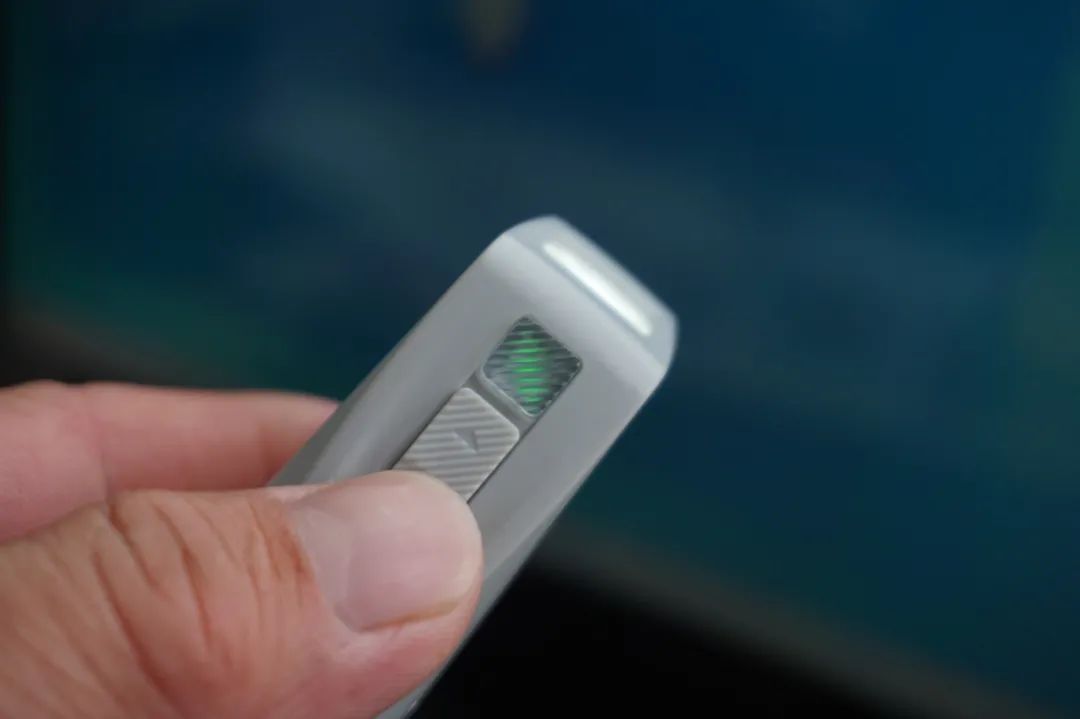 長條型撥動(dòng)開關(guān)手感還不錯(cuò),手電采用物理斷電,防止電路損耗。另外手電配有多功能操作按鍵,有電量顯示功能,綠色代表電力充足,還可以檔位切換非常實(shí)用。