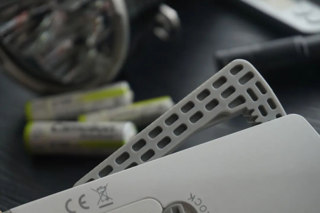 旋轉(zhuǎn)可拆卸電池倉蓋,方便更換電芯,用指甲轉(zhuǎn)動(dòng)即可,旋轉(zhuǎn)紐相比卡扣更保險(xiǎn)不容易丟失。