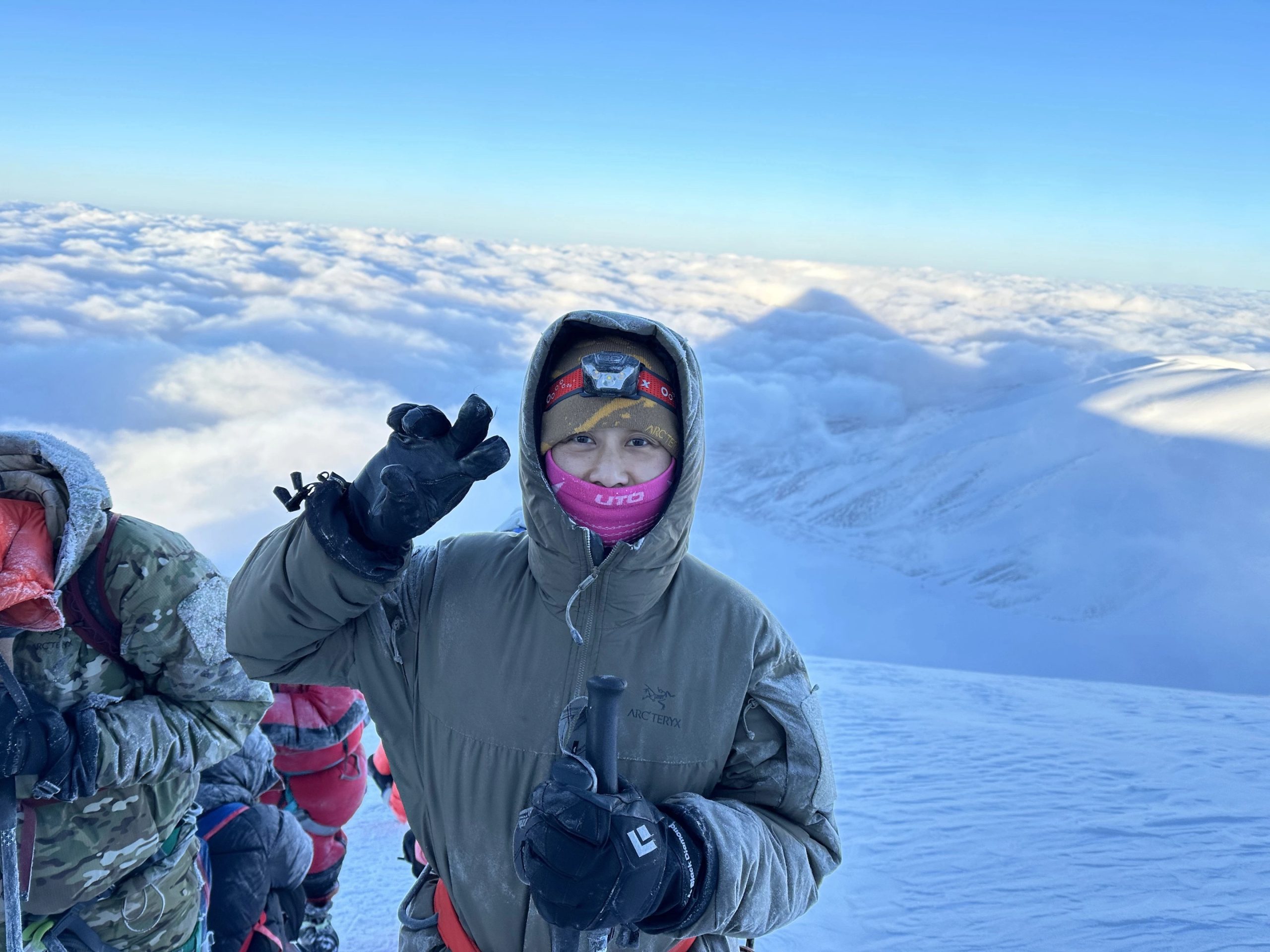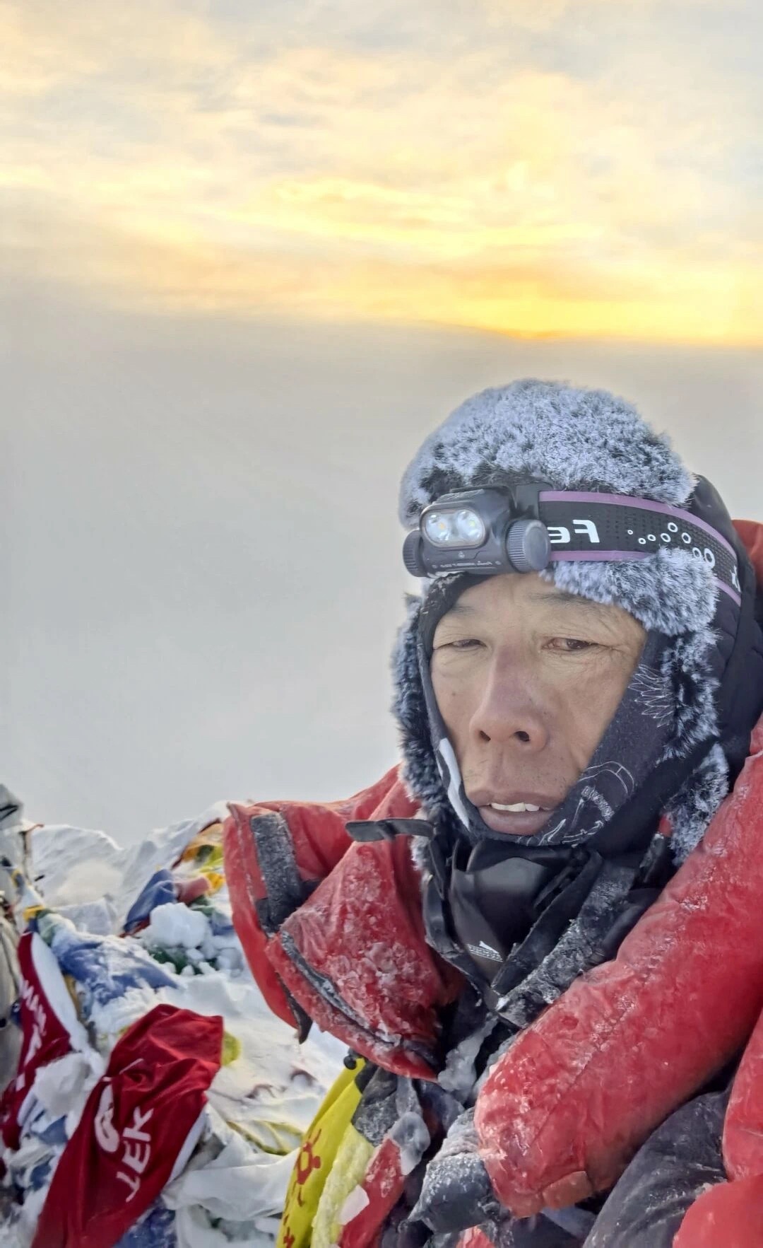 隊員林耀虎在珠峰頂上的自拍,頭戴:HM65R-T V2.0