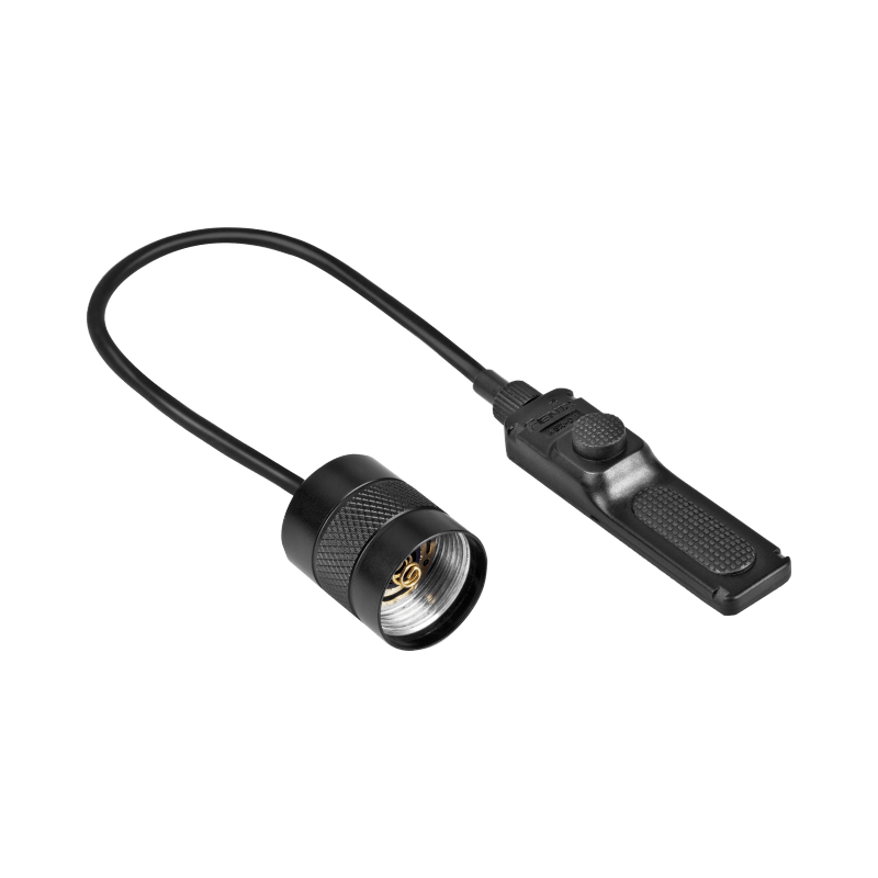 戰(zhàn)術(shù)開關(guān)(圓形),可以戰(zhàn)術(shù)點(diǎn)亮或鎖定(更多具體功能因手電而異),并可長時(shí)間通過3A電流,和點(diǎn)通開關(guān)互相獨(dú)立,互不干涉