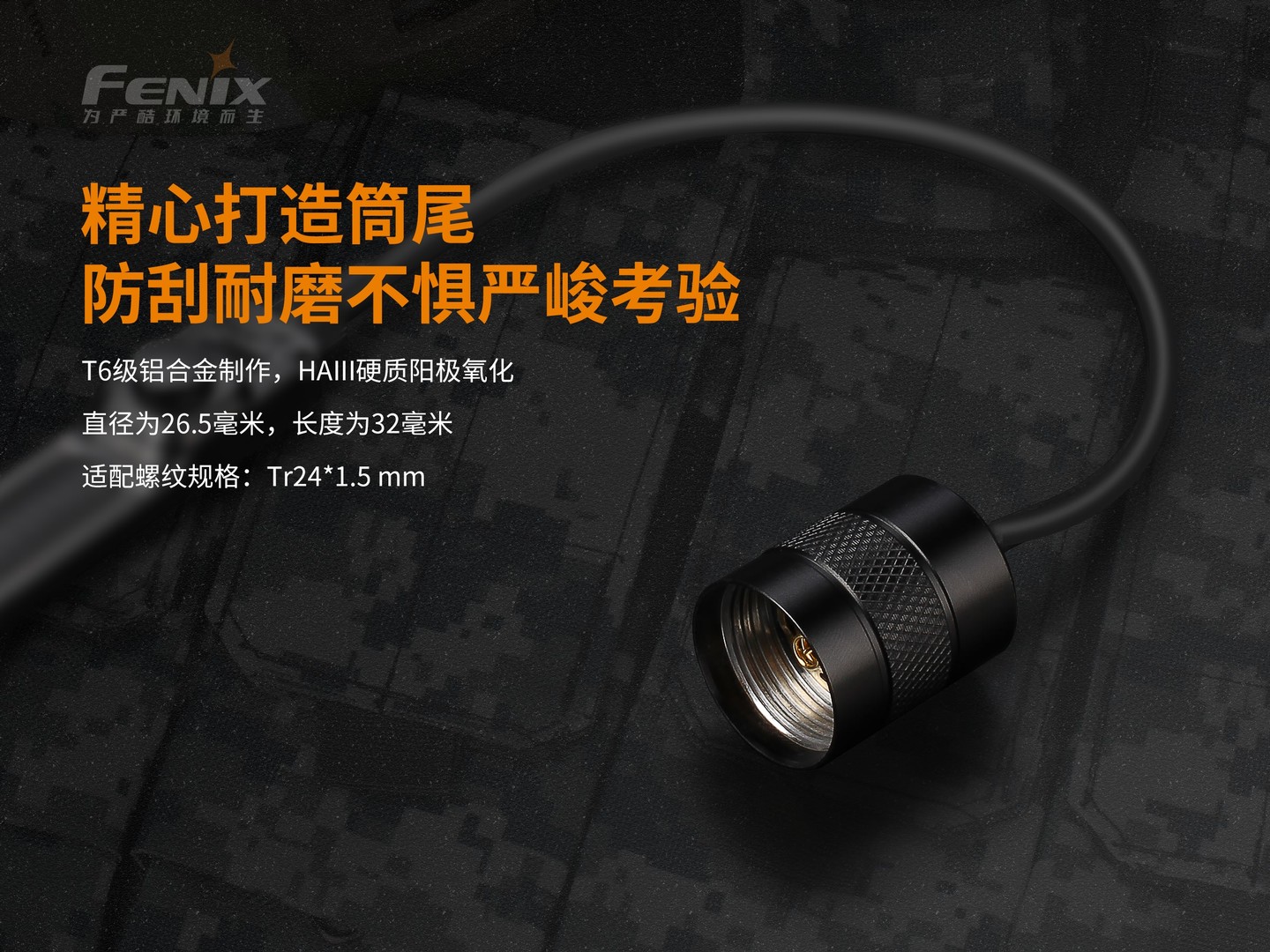 筒尾采用T6級(jí)鋁合金制作,軍規(guī)三級(jí)硬質(zhì)氧化,防刮、耐磨