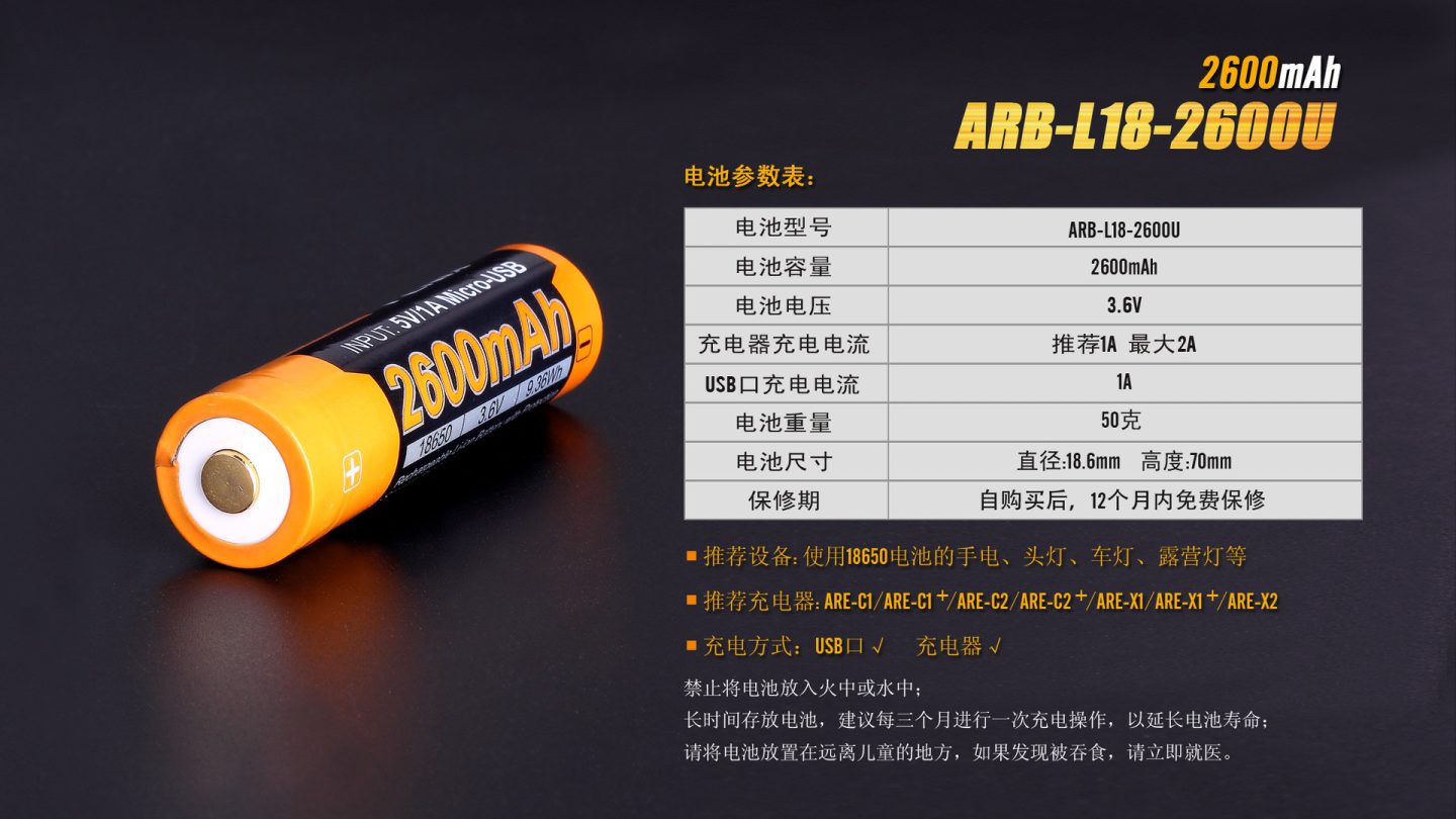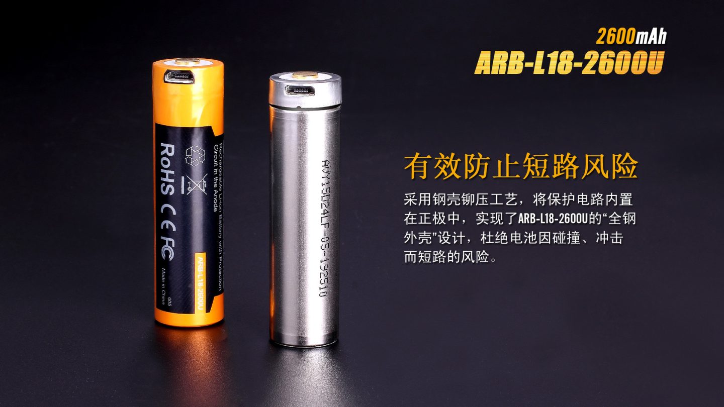 ARB-L18-2600U既可以通過自身的USB接口完成充電,也可以通過充電器完成充電。 采用鋼殼鉚壓工藝,將保護(hù)電路內(nèi)置在正極中,實(shí)現(xiàn)了ARB-L18-2300的“全鋼外殼”設(shè)計(jì),杜絕電池因碰撞、沖擊而短路的風(fēng)險(xiǎn)。