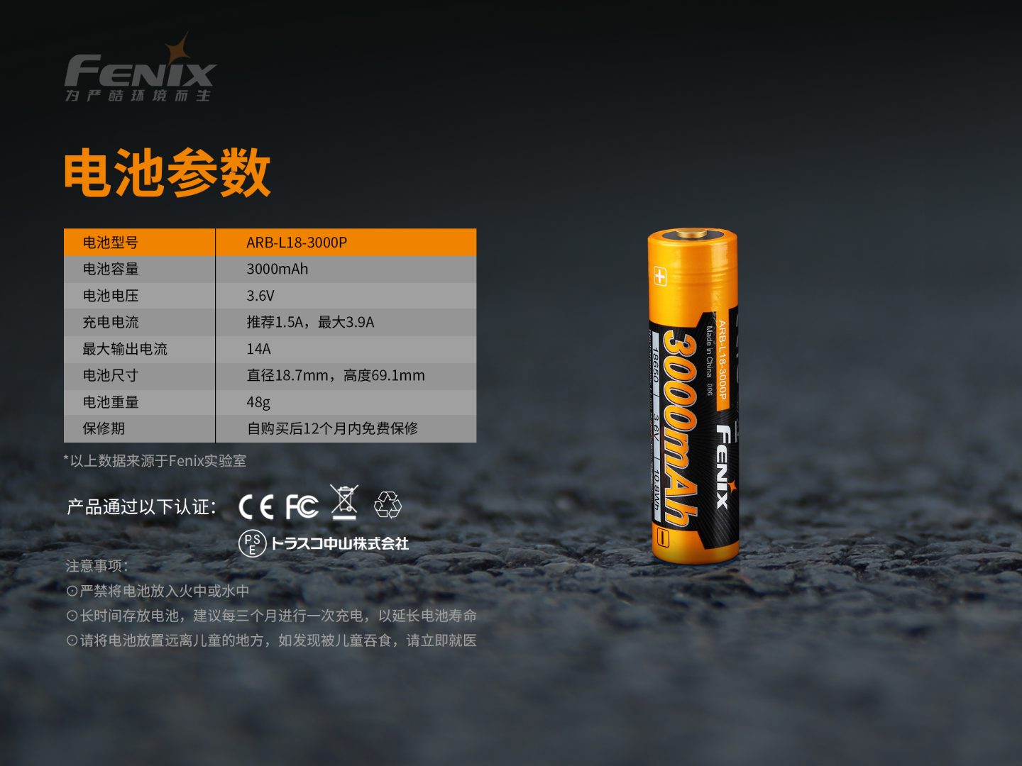 ARB-L18-3000P是Fenix最新推出的18650鋰離子動(dòng)力電池,動(dòng)力強(qiáng)勁,性能穩(wěn)定,最大輸出電流14A;能為照明產(chǎn)品帶來(lái)更加持久的續(xù)航時(shí)間;多重安全保障,延長(zhǎng)電池壽命,使用更放心;鋼殼鉚壓工藝,給電池提供強(qiáng)硬保護(hù);安全氣孔設(shè)計(jì),迅速排出內(nèi)部廢氣。