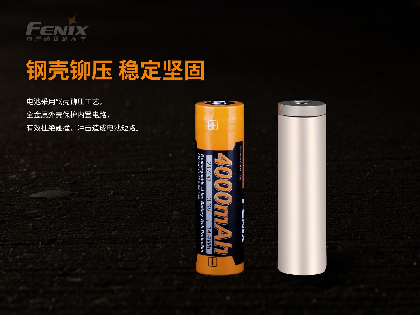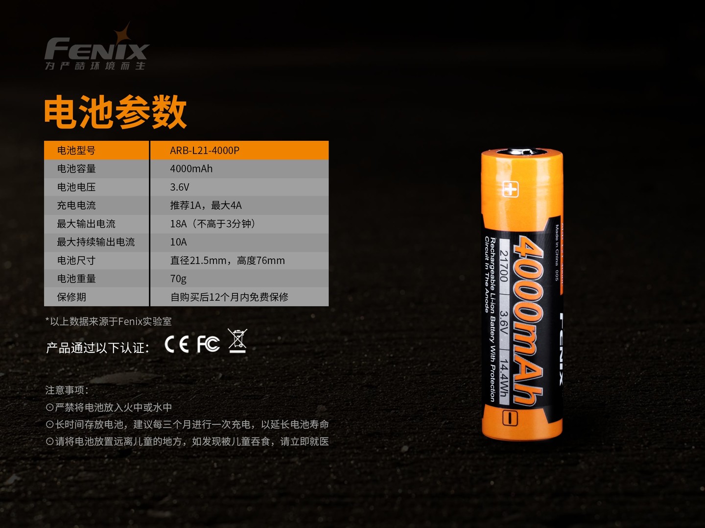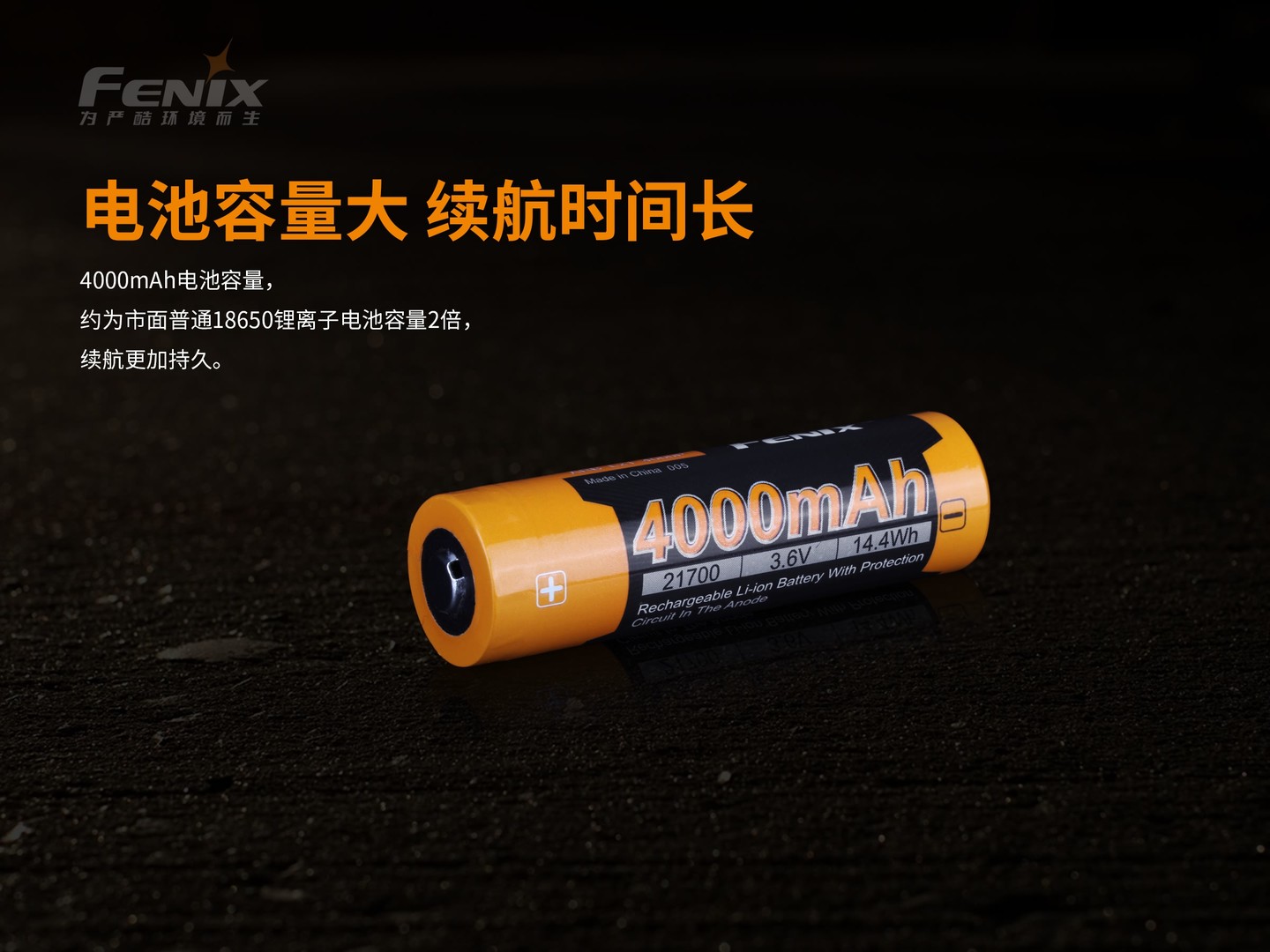 ARB-L21-4000P是Fenix最新推出的21700鋰離子動(dòng)力電池,動(dòng)力強(qiáng)勁,性能穩(wěn)定,最大輸出電流18A,最大持續(xù)輸出電流10A;電量約是市面常規(guī)18650鋰離子電池(2300mAh)的2倍之多,能為照明產(chǎn)品帶來更加持久的續(xù)航時(shí)間;多重安全保障,延長電池壽命,使用更放心;鋼殼鉚壓工藝,給電池提供強(qiáng)硬保護(hù);安全氣孔設(shè)計(jì),迅速排出內(nèi)部廢氣。