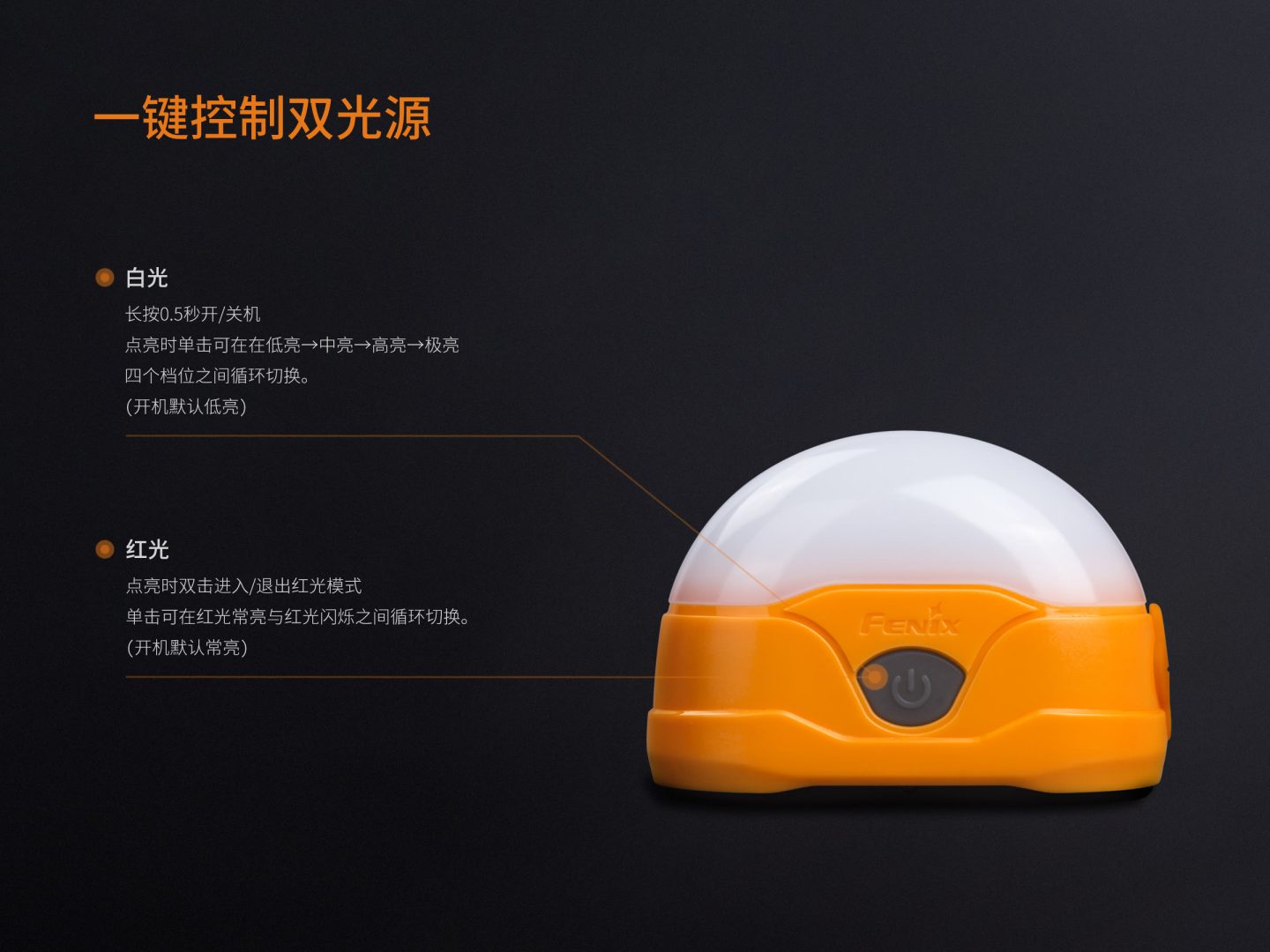 白光和紅光模式,白光4個(gè)檔位,紅光2個(gè)檔位
