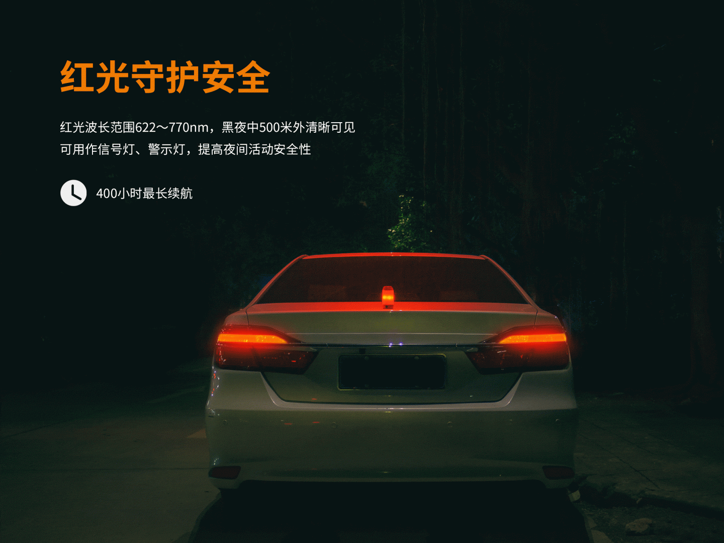 雙模式設(shè)計(jì),白光模式6個(gè)檔位,紅光模式2個(gè)檔位