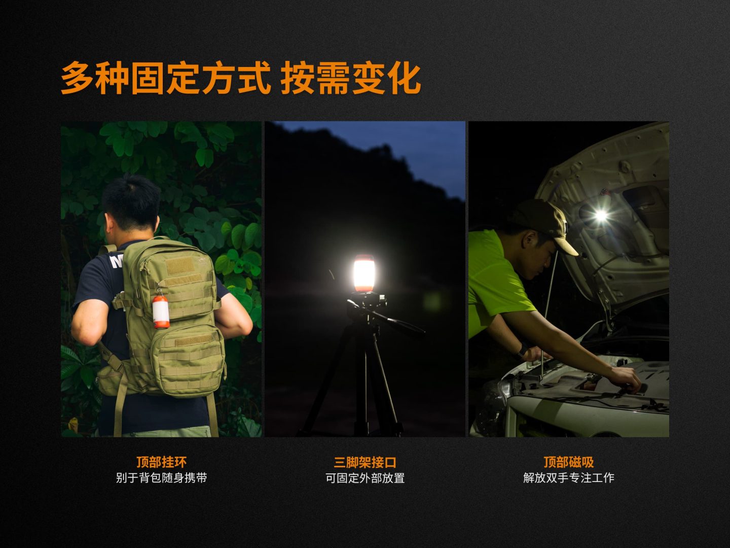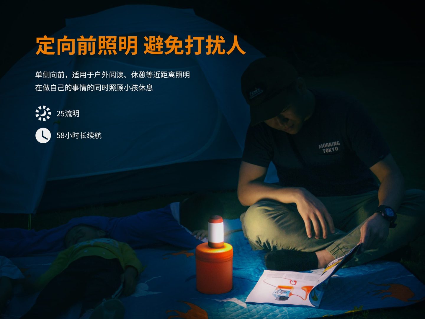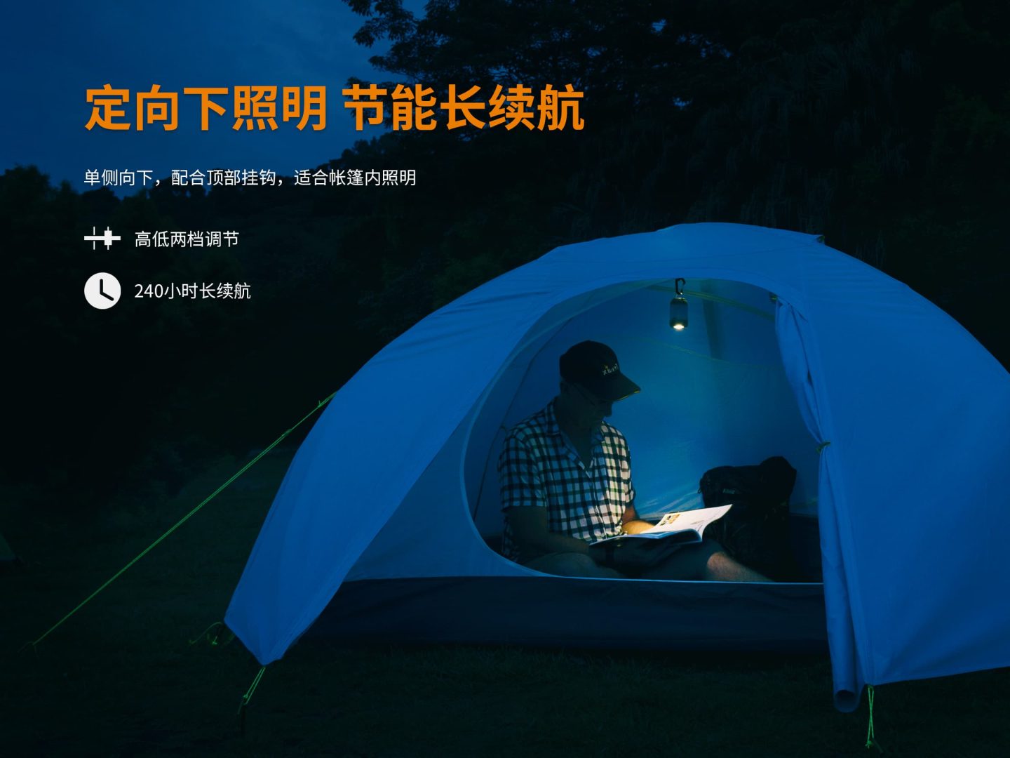 多種定向照明功能,兼顧帳篷內(nèi)照明和營(yíng)地照明