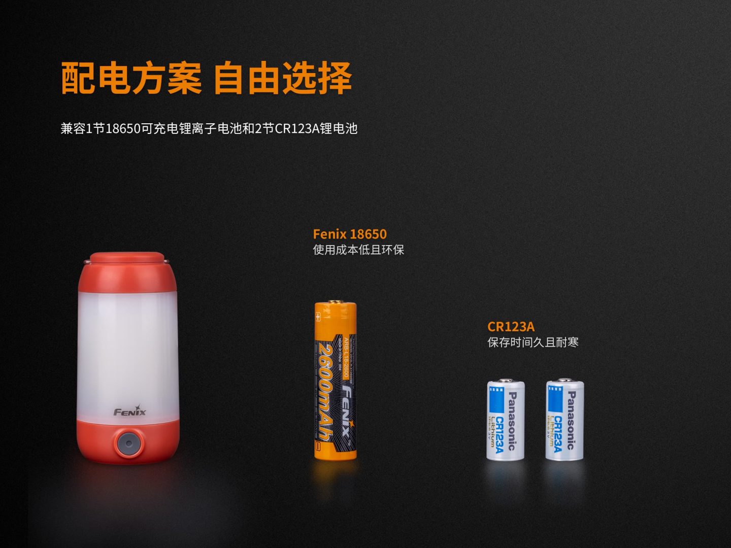采用1節(jié)18650電池供電,兼容2節(jié)CR123A電池使用