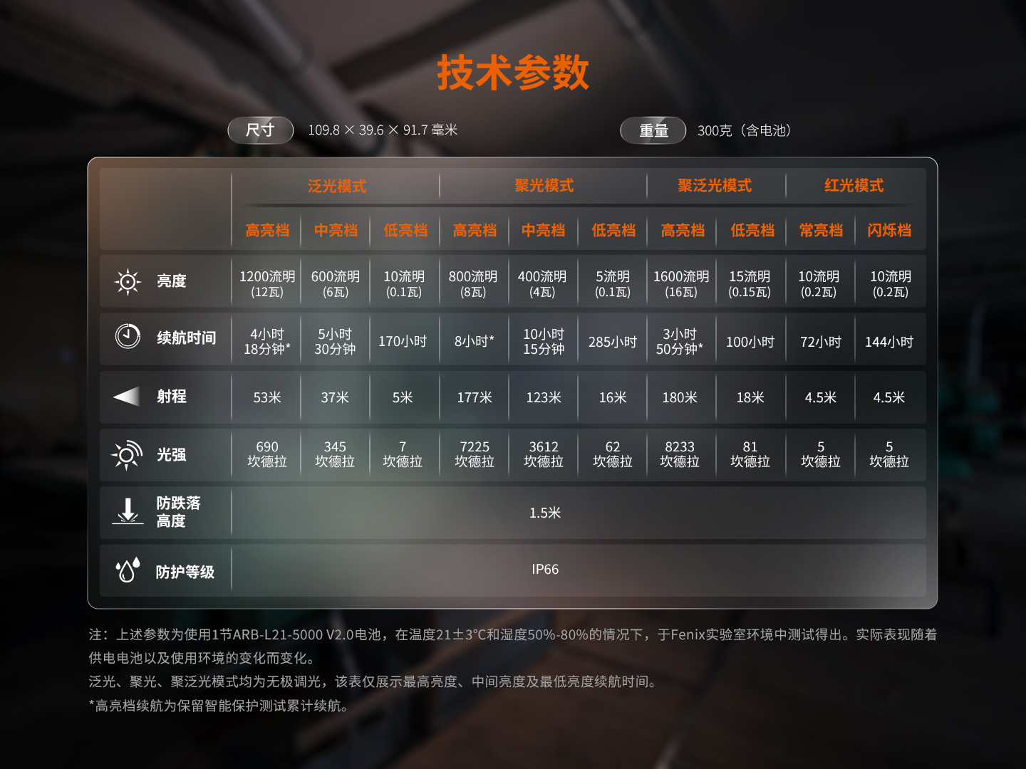 聚泛組合最高亮度1600流明,最遠(yuǎn)射程180米