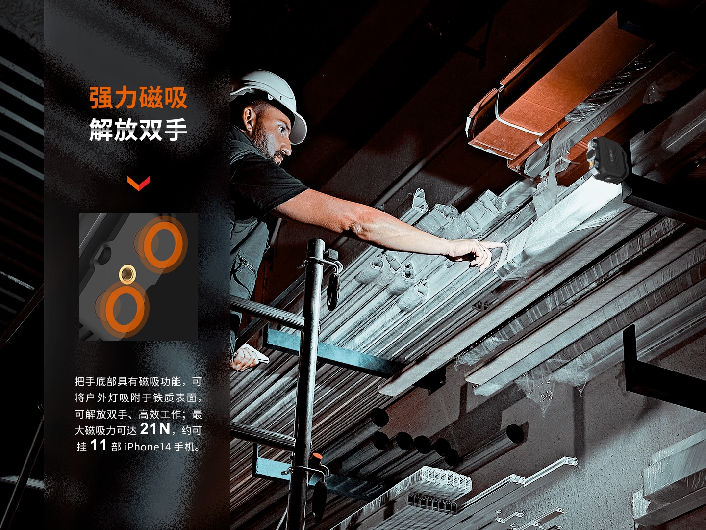 把手具有磁吸功能,可直接吸附在鐵質(zhì)物體表面