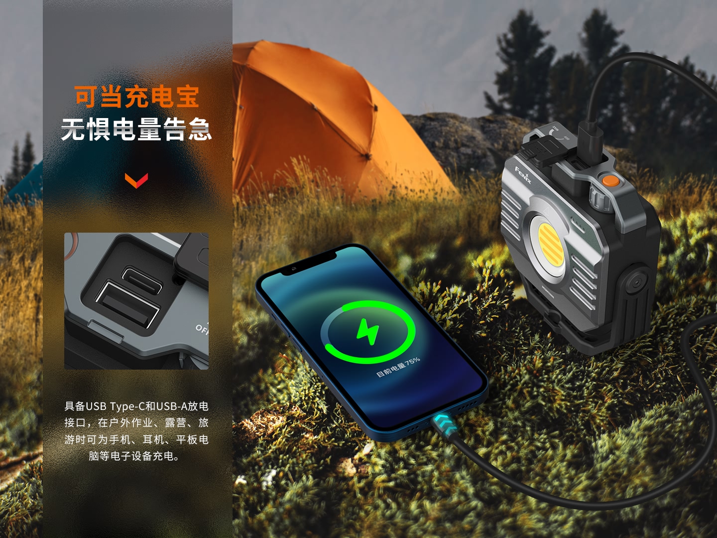 具有USB-A和USB-C放電接口,可作移動(dòng)電源使用