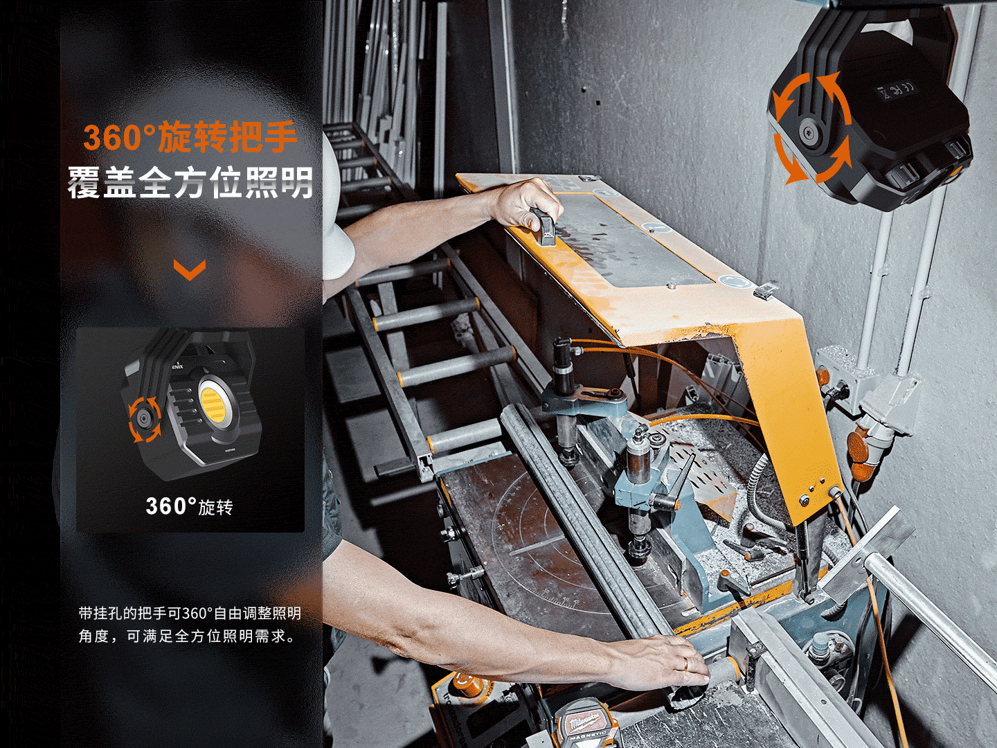 360度旋轉(zhuǎn)把手,可自由調(diào)節(jié)角度確保全方位照明