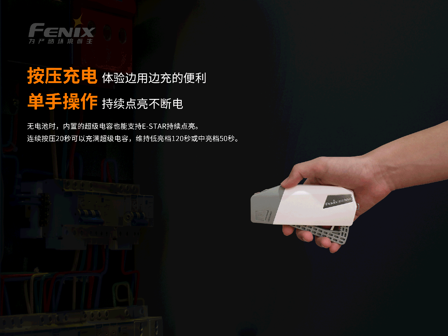 內(nèi)置超級電容,無電池亦可點亮,無需持續(xù)手動按壓。