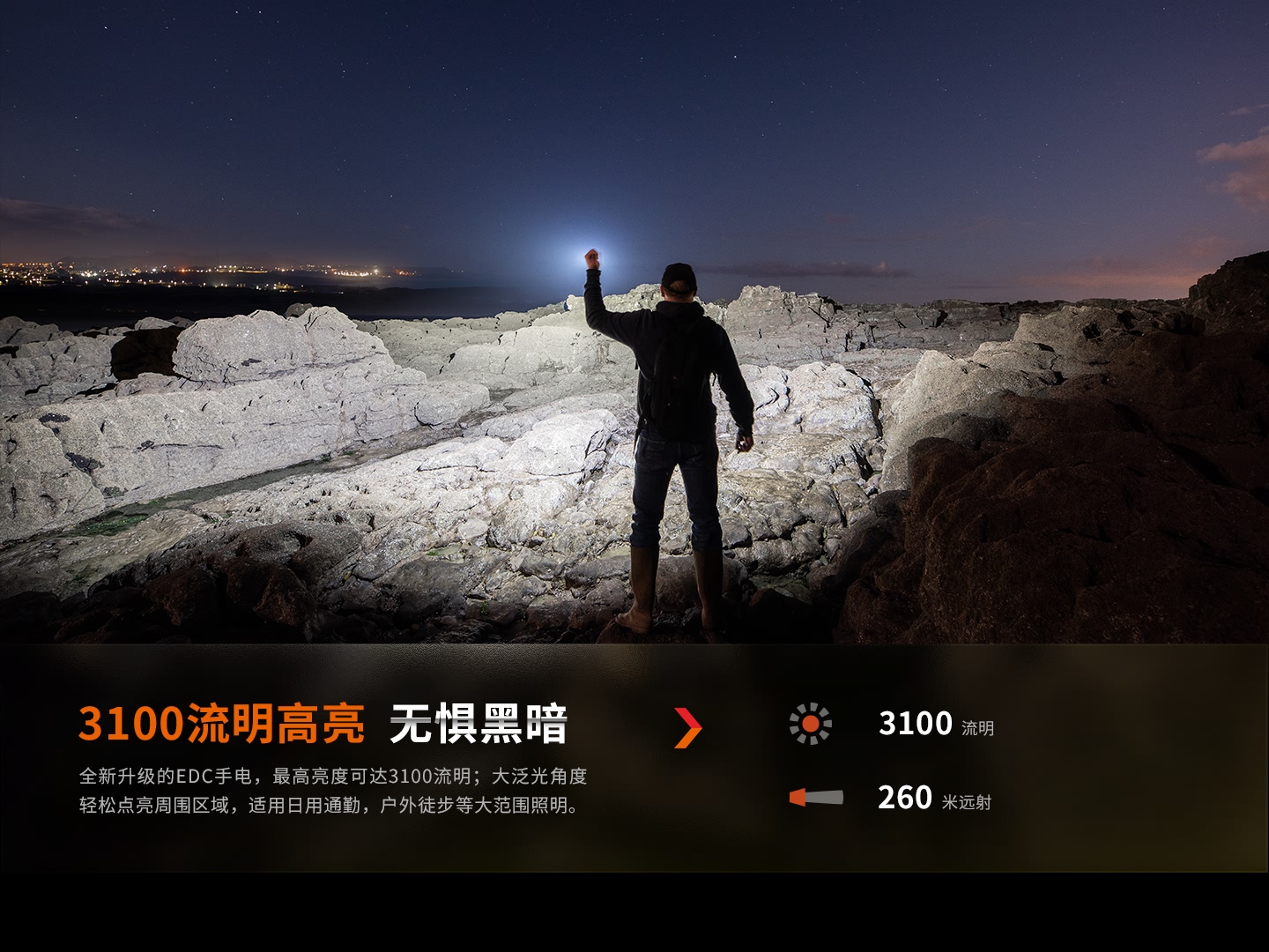 最高亮3100流明,最遠(yuǎn)射程260米