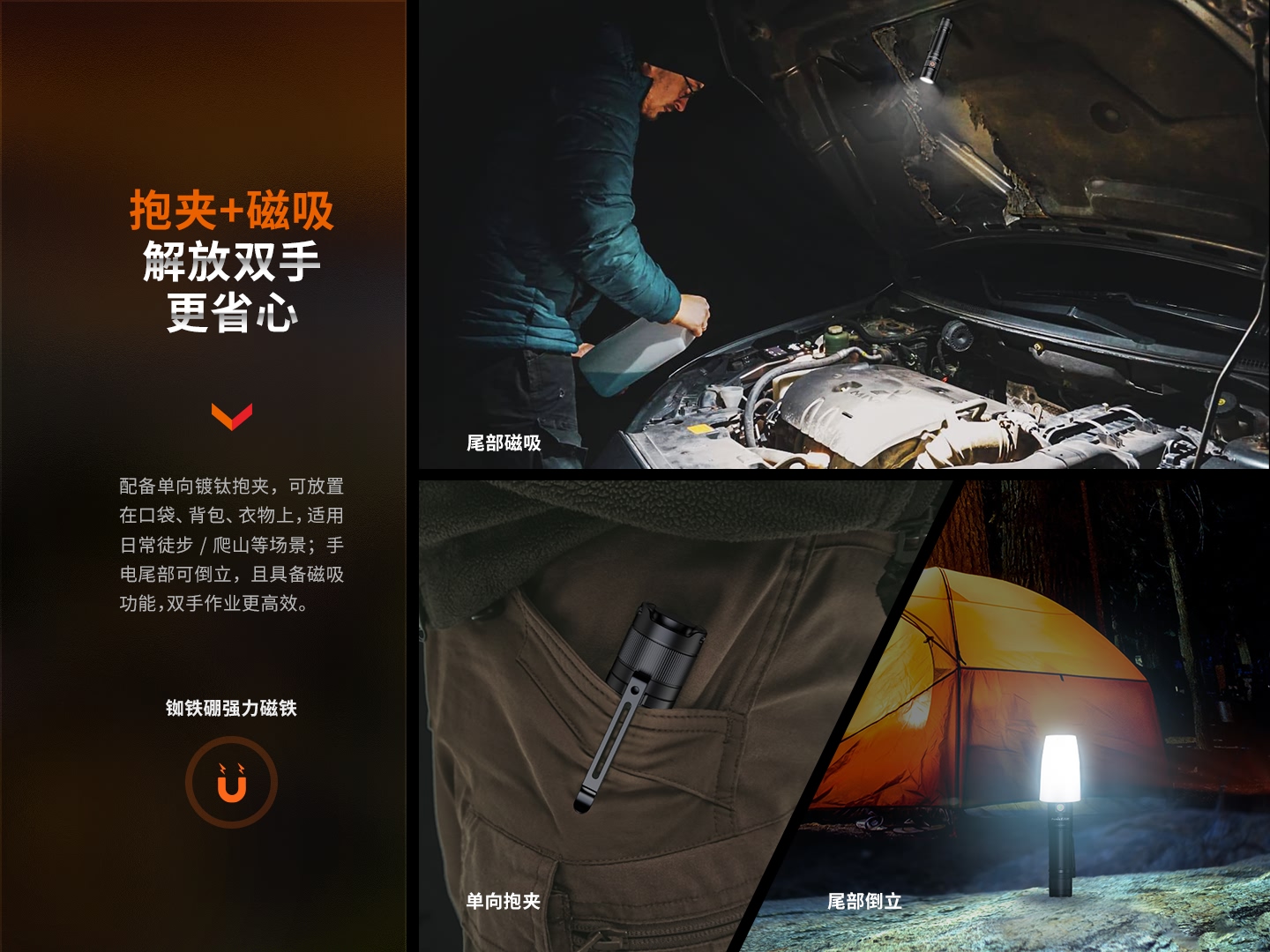 尾部帶磁吸功能,便于日常檢修, 配置單向抱夾,攜帶方便