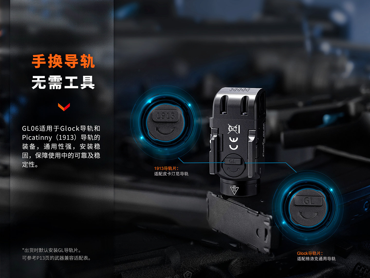 GL06專為帶格洛克通用導(dǎo)軌和皮卡汀尼導(dǎo)軌等型號(hào)而設(shè)計(jì)