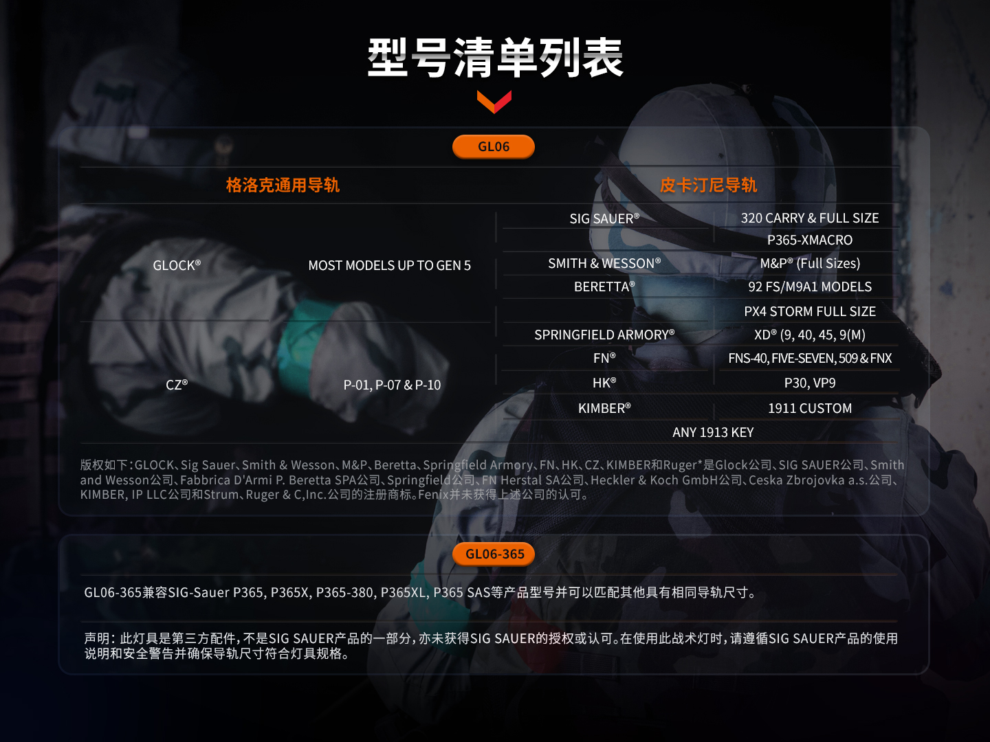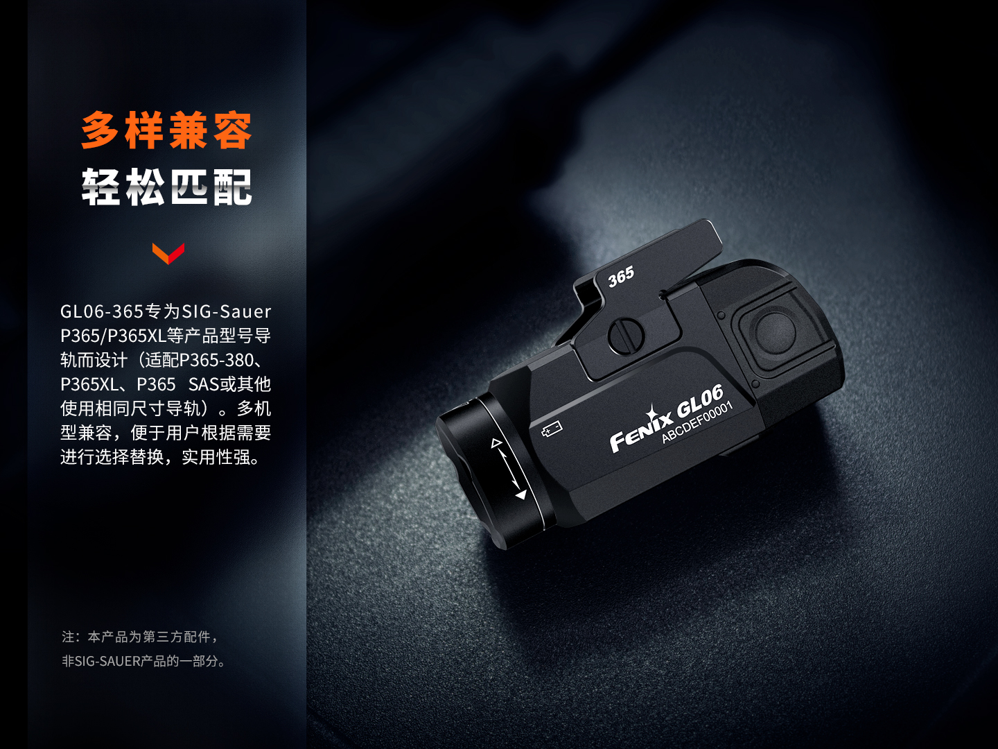 GL06-365專為SIG-Sauer P365/P365 XL等導(dǎo)軌而設(shè)計(jì)(適配SIG-Sauer P365、P365X、P365-380、P365XL、P365 SAS或其他使用相同尺寸導(dǎo)軌)