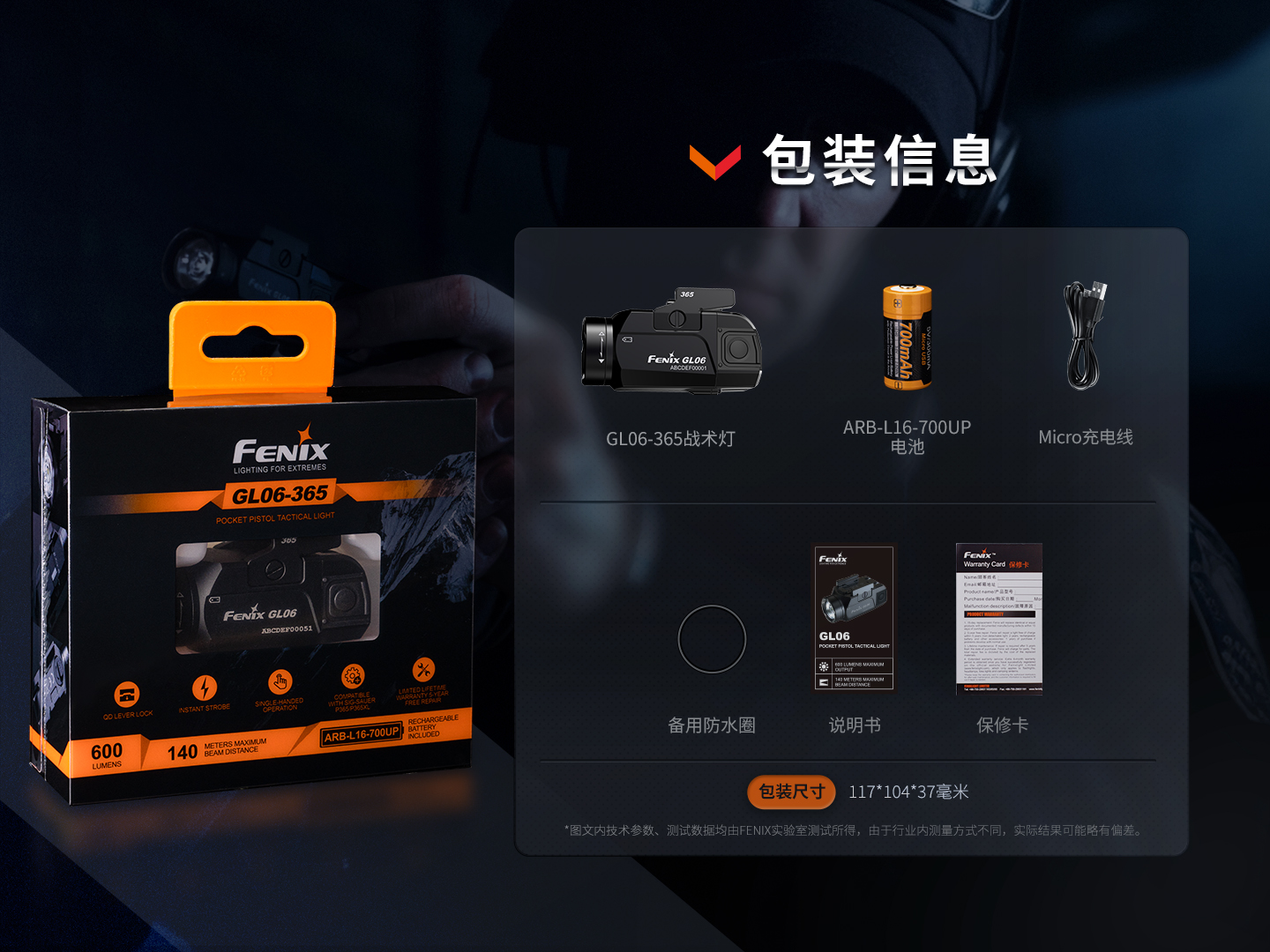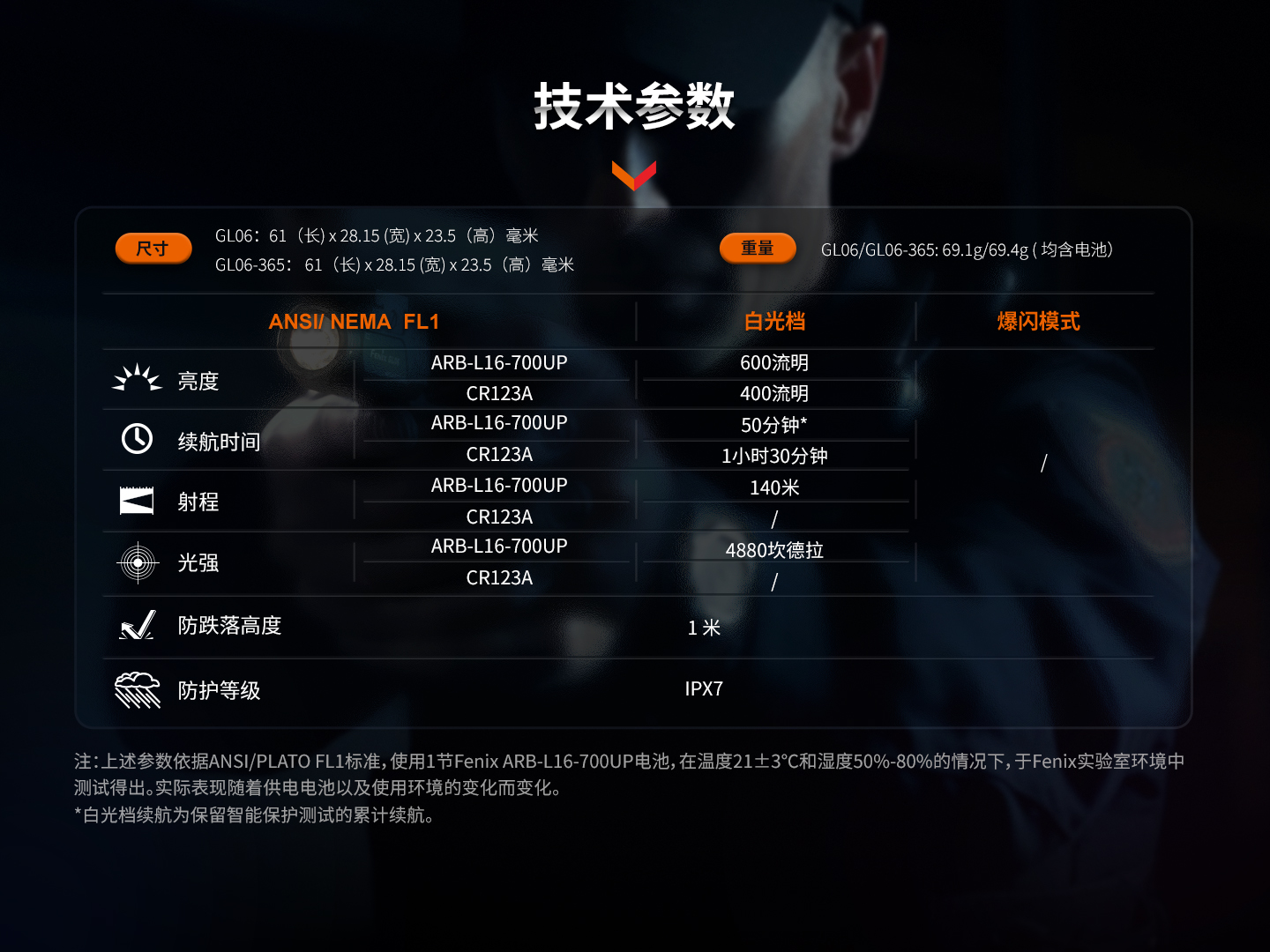 使用1節(jié)ARB-L16-700UP可充電鋰離子電池供電,兼容CR123A電池供電