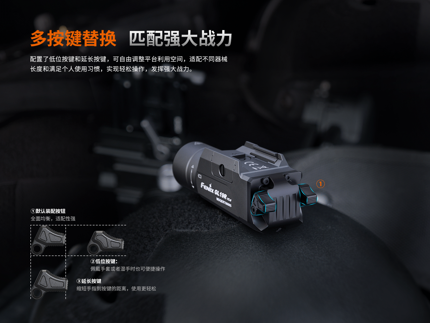 尾部左右兩側(cè)機(jī)械開關(guān),左右手均可操作,一觸即亮
