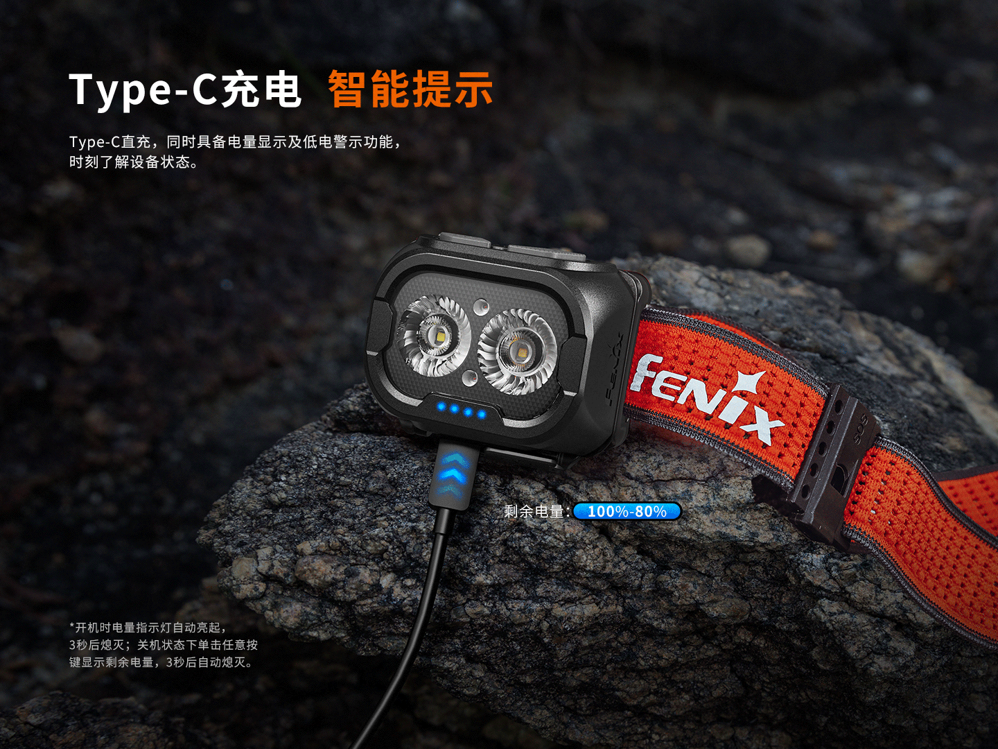 Type-C充電接口,具備電量顯示及低電警示功能