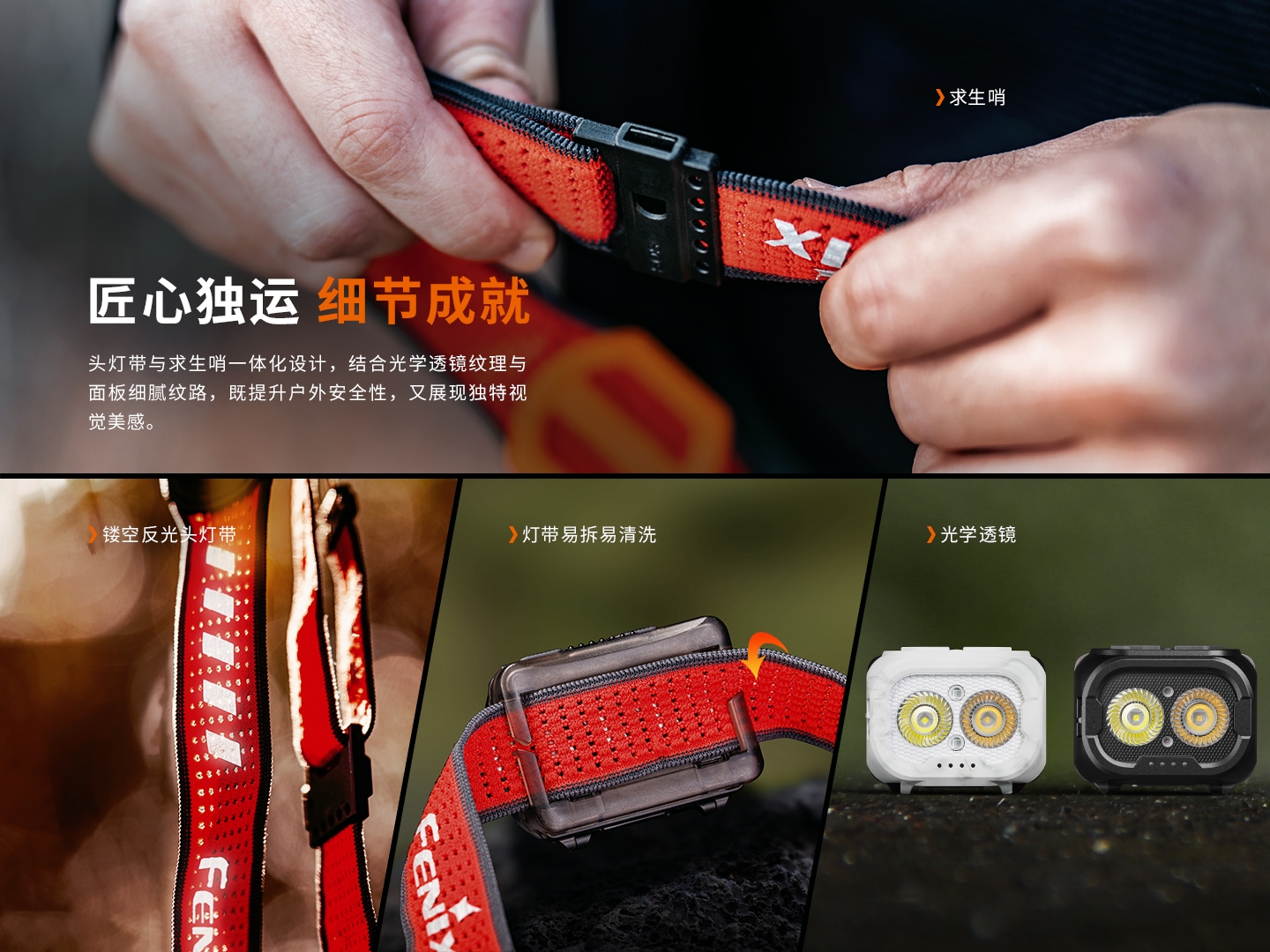 求生哨與頭燈帶一體設(shè)計(jì),保障戶外活動(dòng)安全