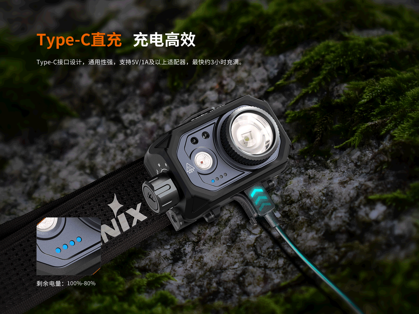 HL45R底部有Type-C充電口;尾燈充電時電量指示燈將會以從左向右的方式遞增循環(huán)點亮,電池充滿電約3小時。