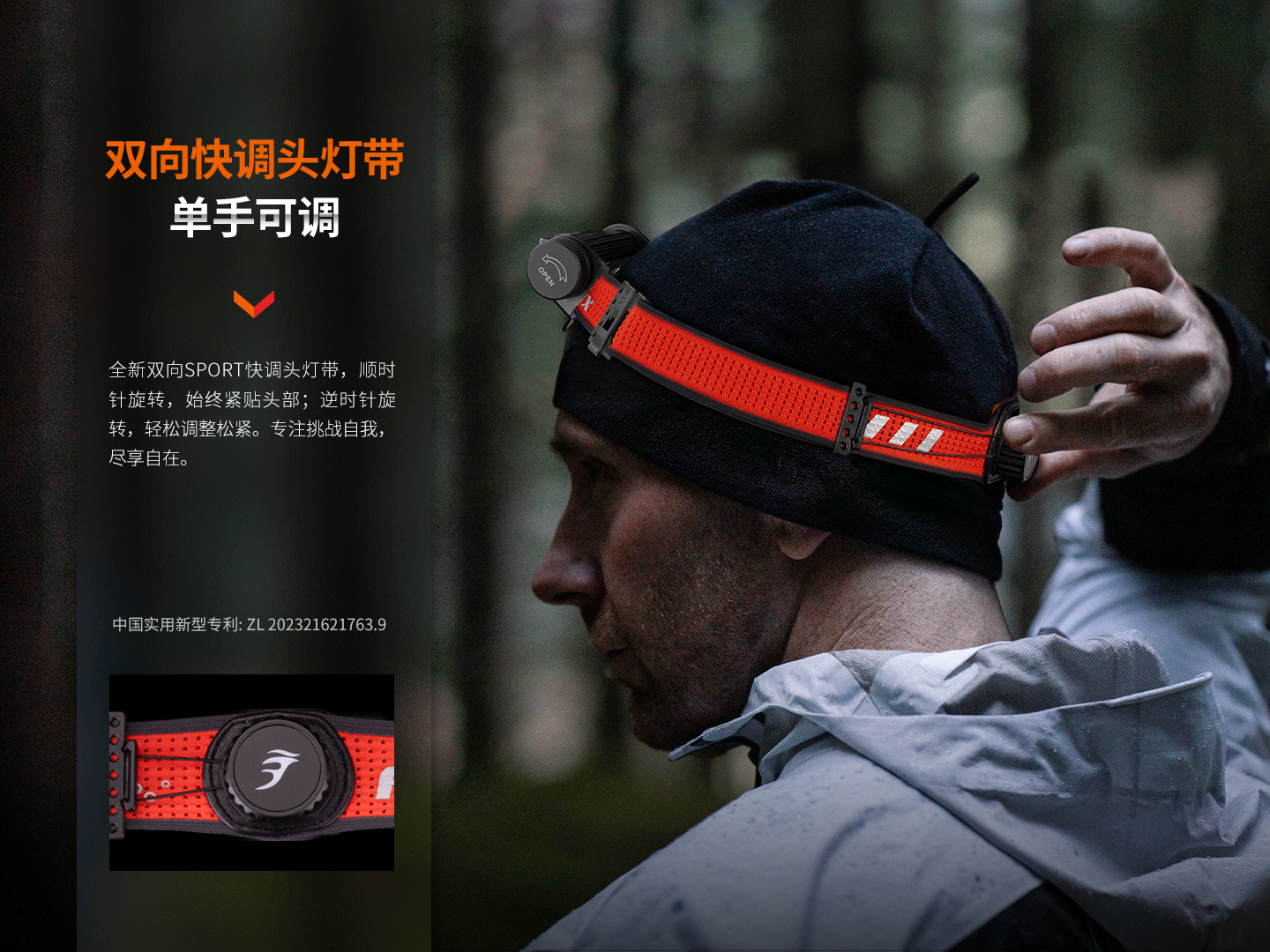 使用26毫米SPORT雙向調(diào)節(jié)頭燈帶系統(tǒng),可單手快速調(diào)節(jié)頭燈帶松緊