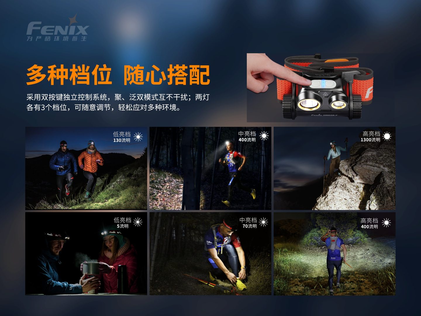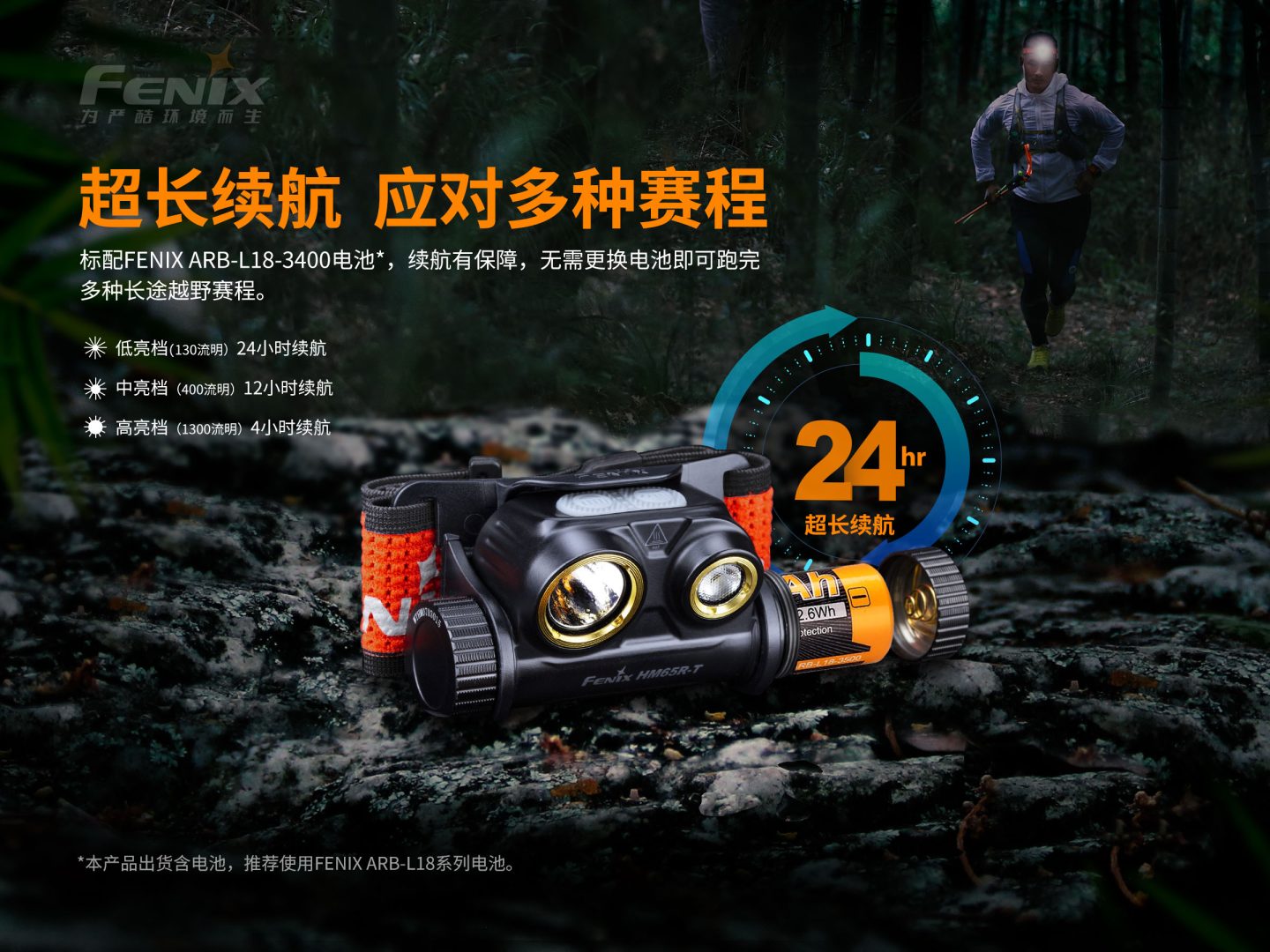 HM65R-T的越野模式是指聚光低亮檔模式,頭燈聚光低亮檔130流明的亮度以及24小時的續(xù)航時長,足以滿足夜間越野活動亮度和續(xù)航需求,十分適合夜間越野使用。