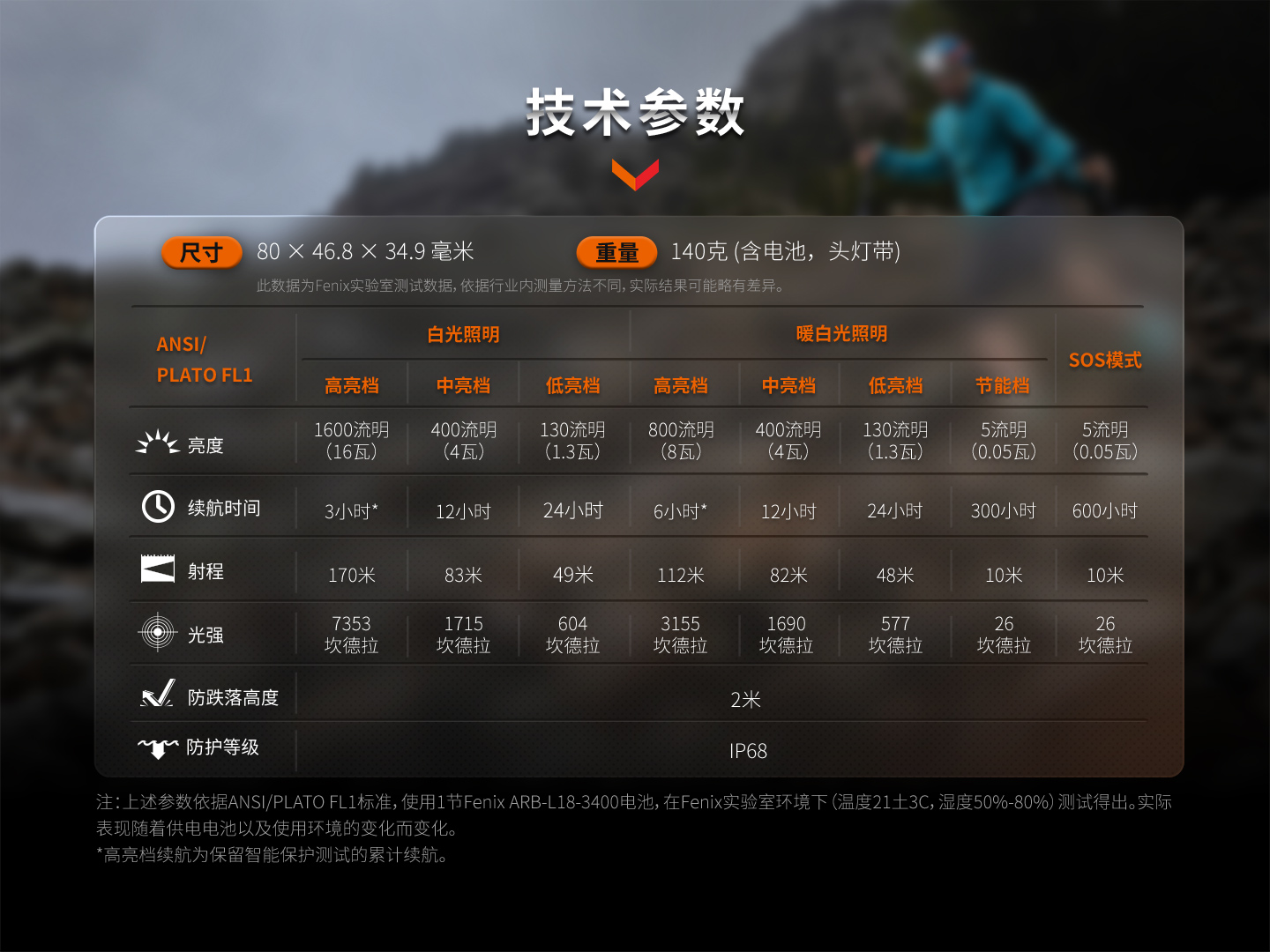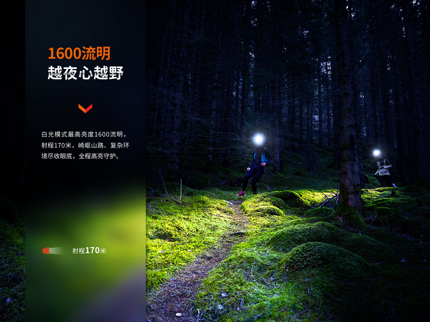 最高亮度1600流明,最遠(yuǎn)射程170米;