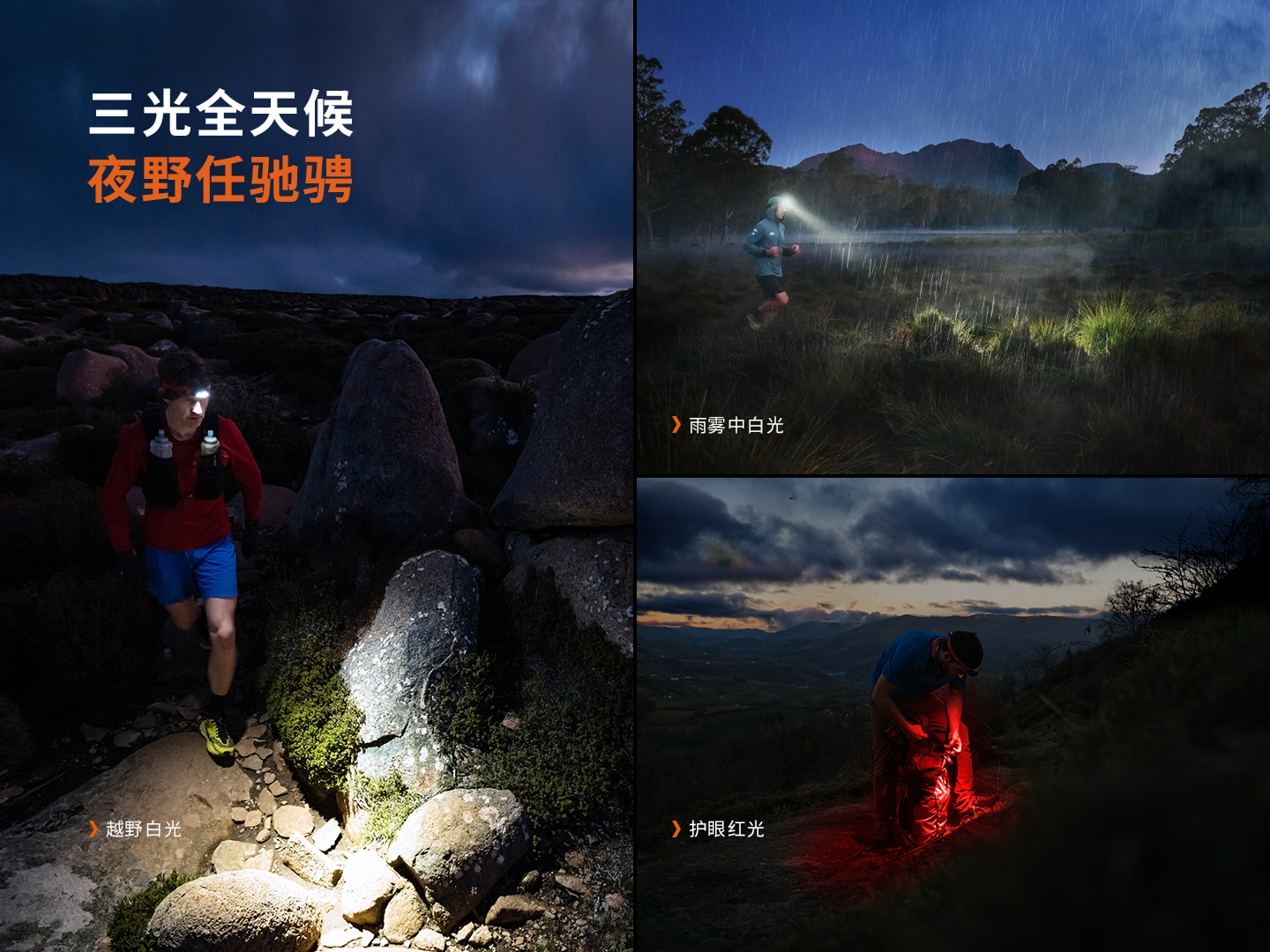 - 三種光源冷白光、中白光及紅光三光源,可應(yīng)對復(fù)雜的地形環(huán)境及雨霧雪天氣