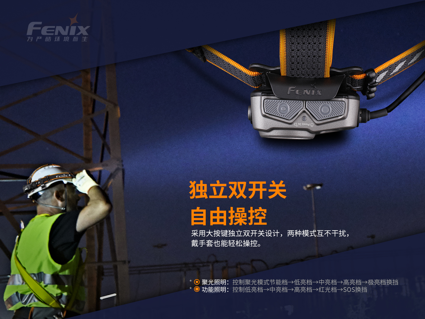 Fenix HP25R V2.0是一款充電式長續(xù)航作業(yè)頭燈。集聚光、泛光和紅光模式于一體,雙開關(guān)獨(dú)立控制,滿足工業(yè)作業(yè)時(shí)的不同照明需求。USB Type-C快充設(shè)計(jì),通用接口,充電更加便捷高效。5000mAh大容量電池,保證400小時(shí)的持久照明,續(xù)航無憂。