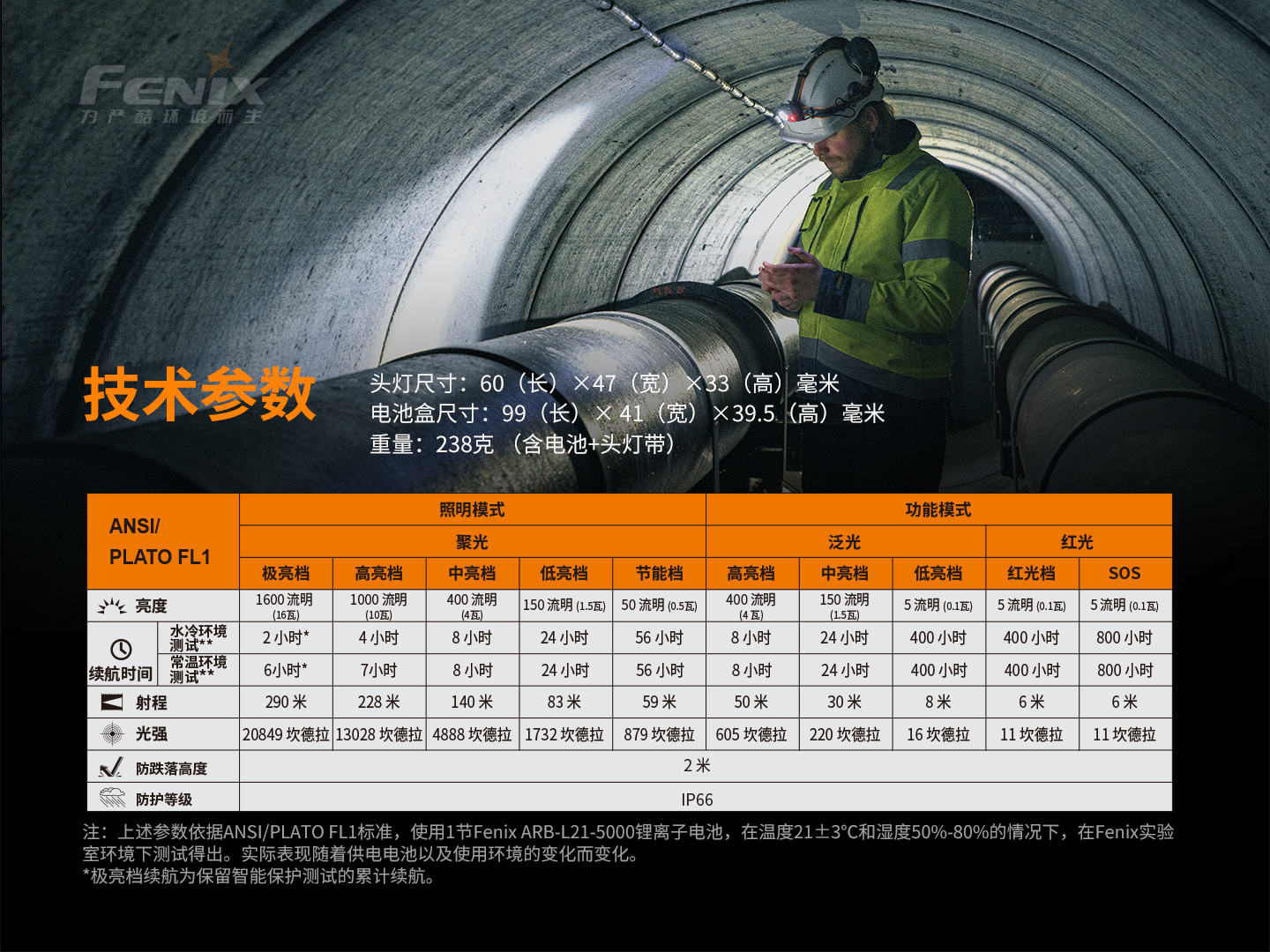 標(biāo)配1節(jié)Fenix ARB-L21-5000鋰離子電池,兼容1節(jié)18650電池