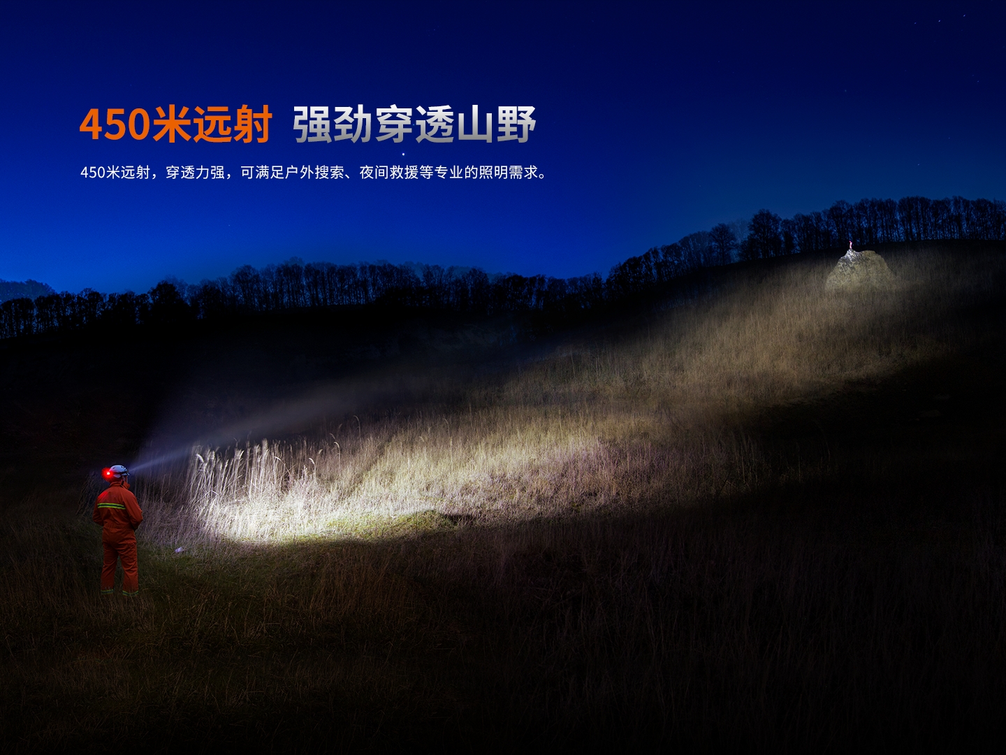 450米超遠(yuǎn)射程,滿足搜索、救援、探險等專業(yè)性較強的戶外照明需求;