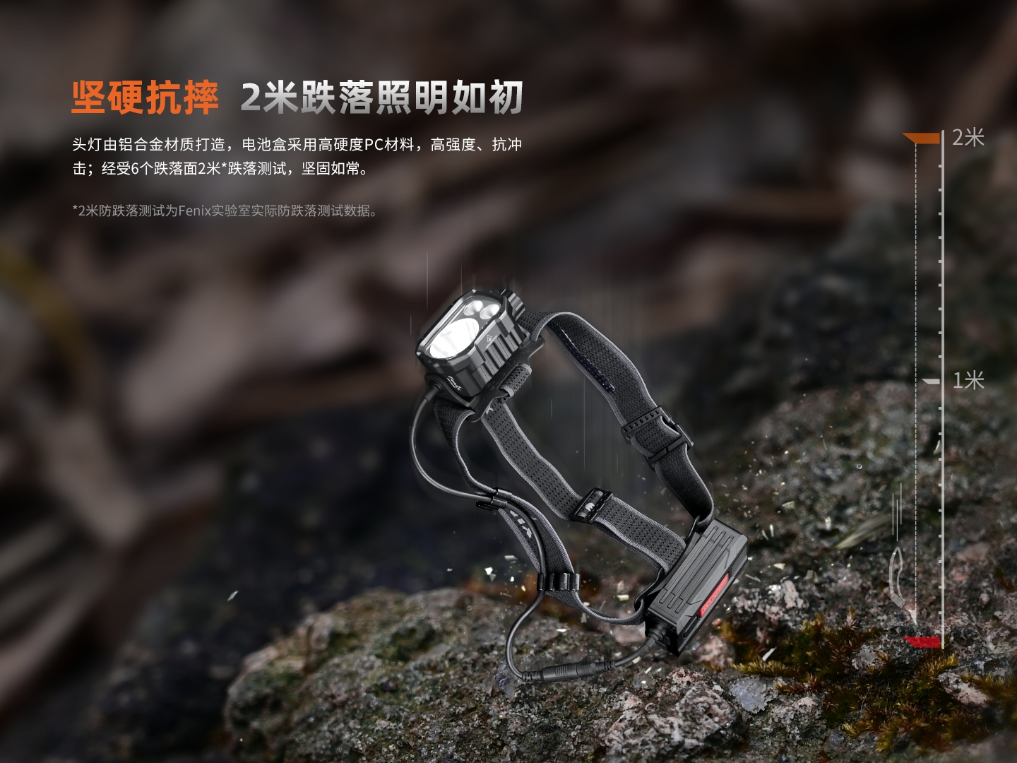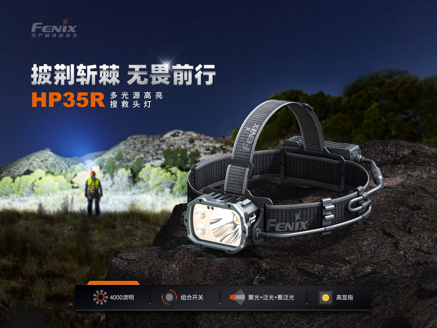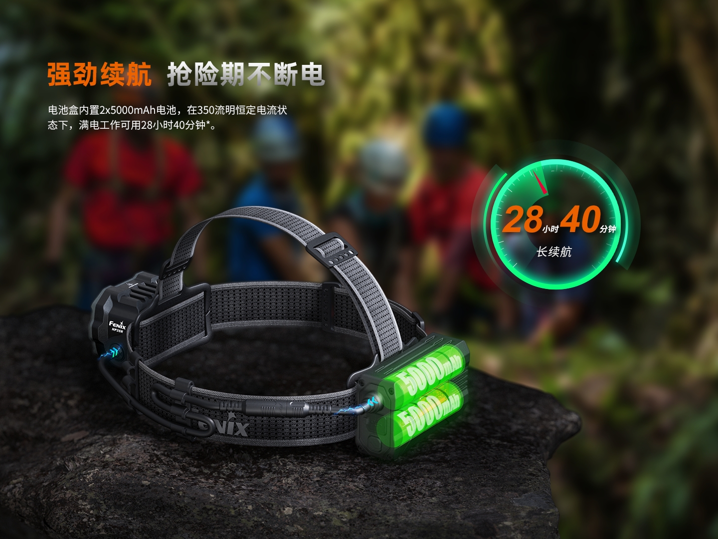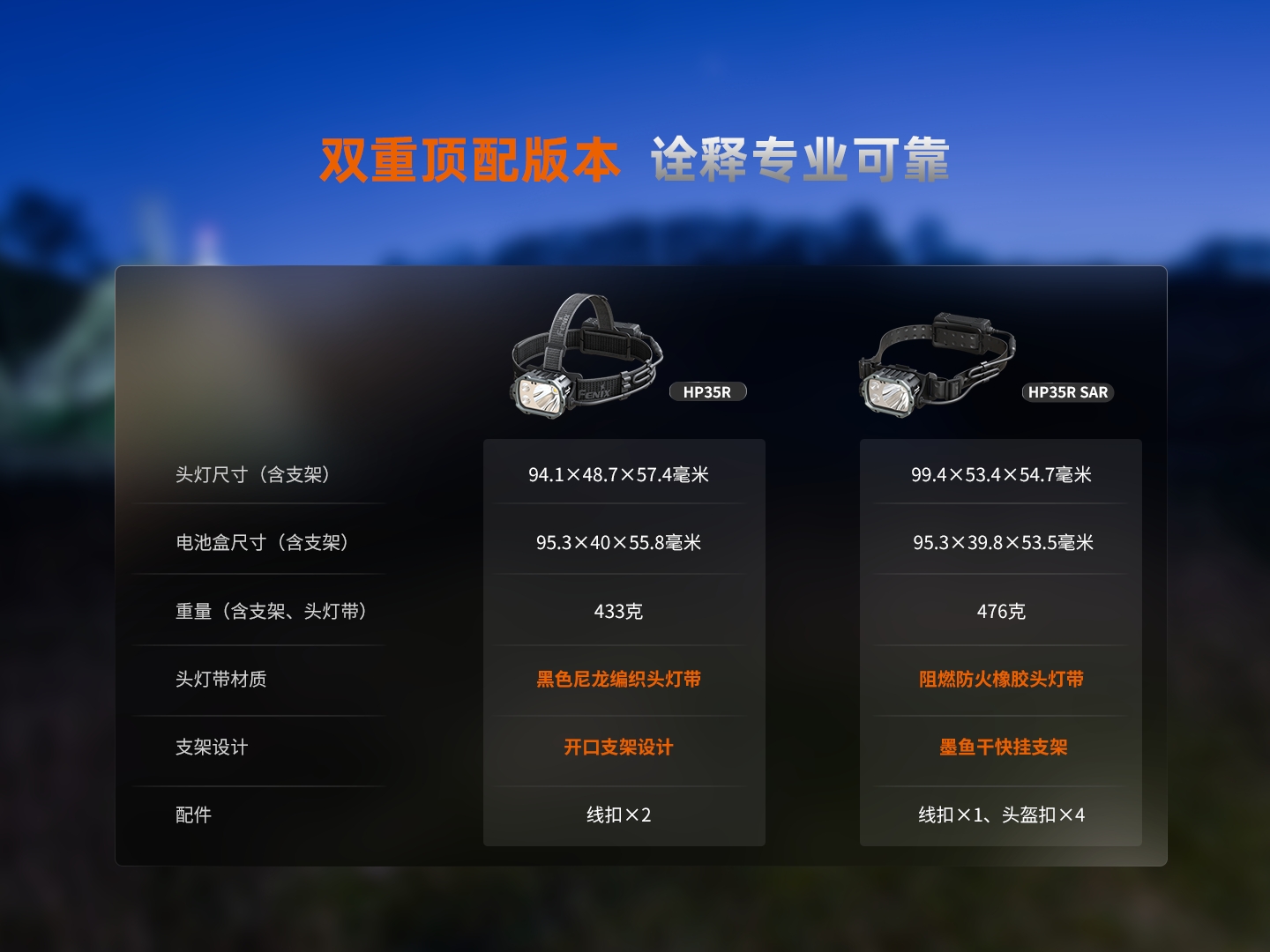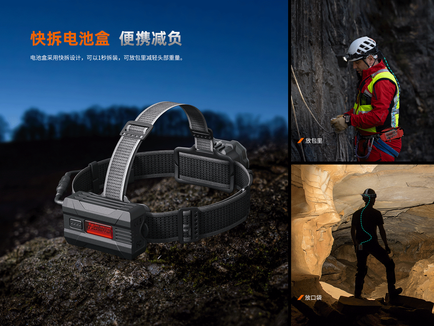 HP35R SAR采用防滑阻燃防火橡膠頭燈帶,其獨創(chuàng)的墨魚干快掛支架兼容標(biāo)準(zhǔn)的NVG底座(墨魚干底座),可直接掛上,方便快捷;HP35R采用黑色尼龍編織帶,舒適透氣,方便清洗,同時其頭燈及電池盒的開口支架可適配Fenix