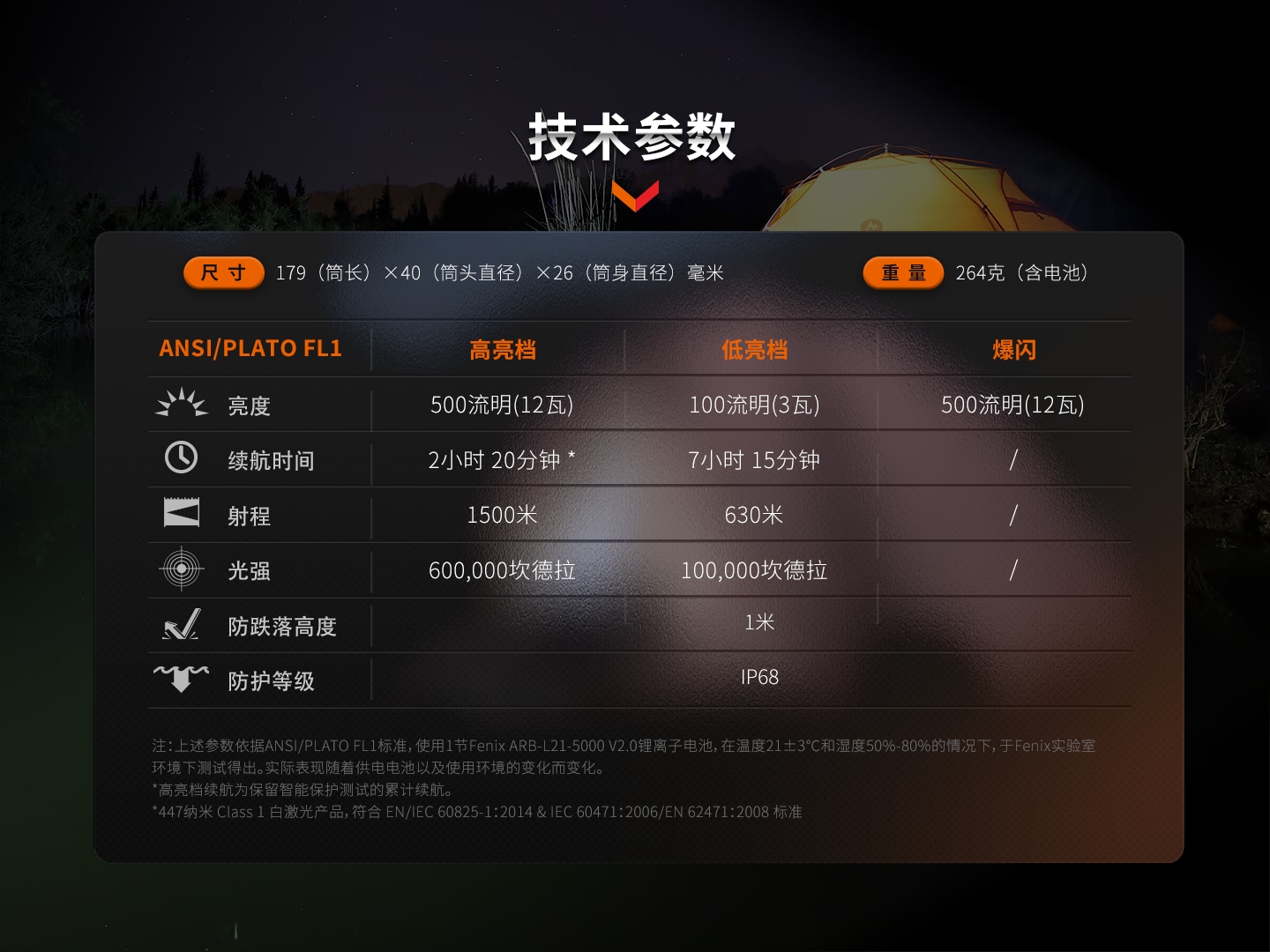最高亮度500流明,最遠(yuǎn)射程1500米