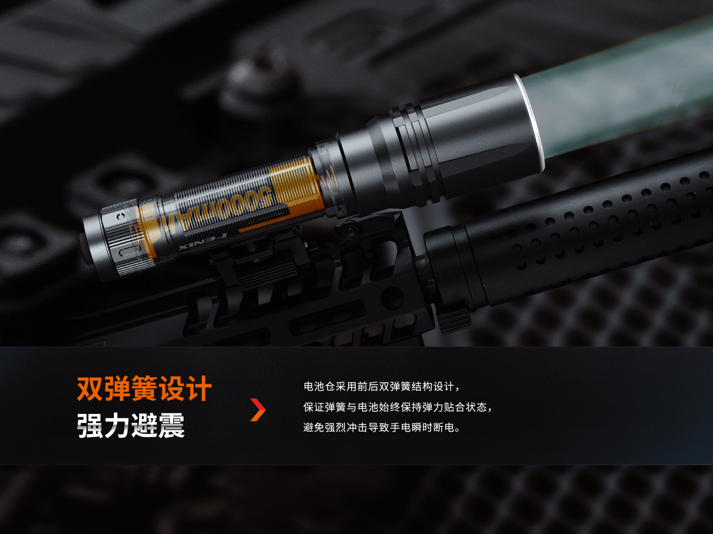 內(nèi)部雙彈簧結(jié)構(gòu),劇烈沖擊下依舊穩(wěn)定照明