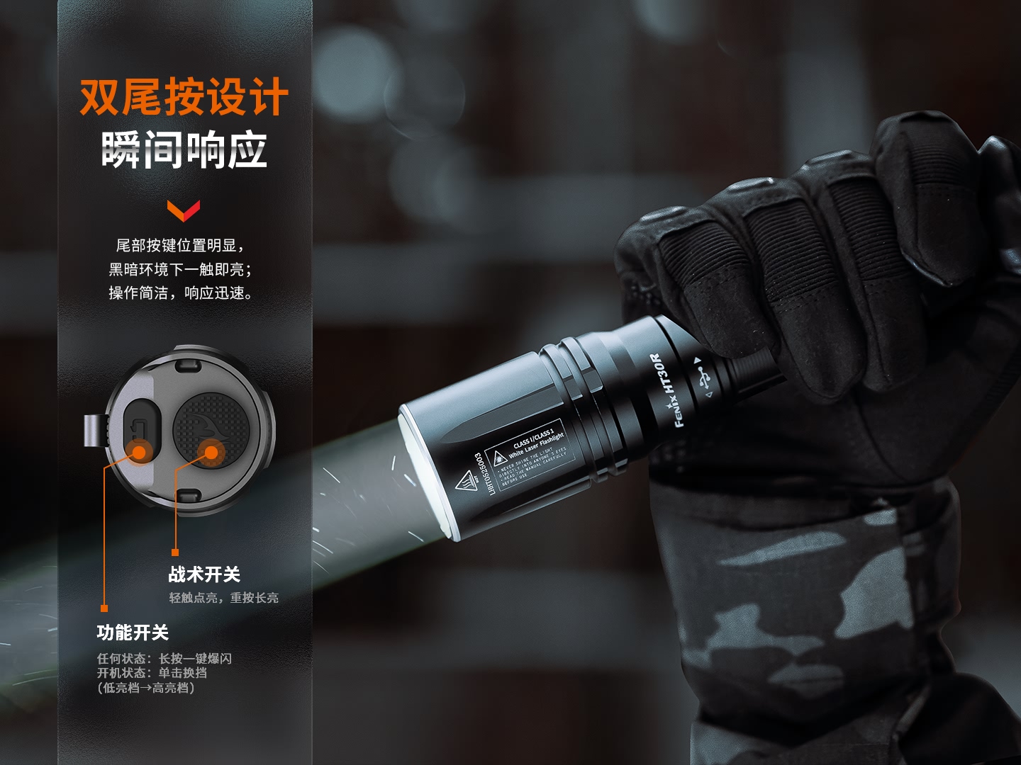 戰(zhàn)術(shù)雙尾按控制,快速實(shí)現(xiàn)一觸即亮和一鍵爆閃