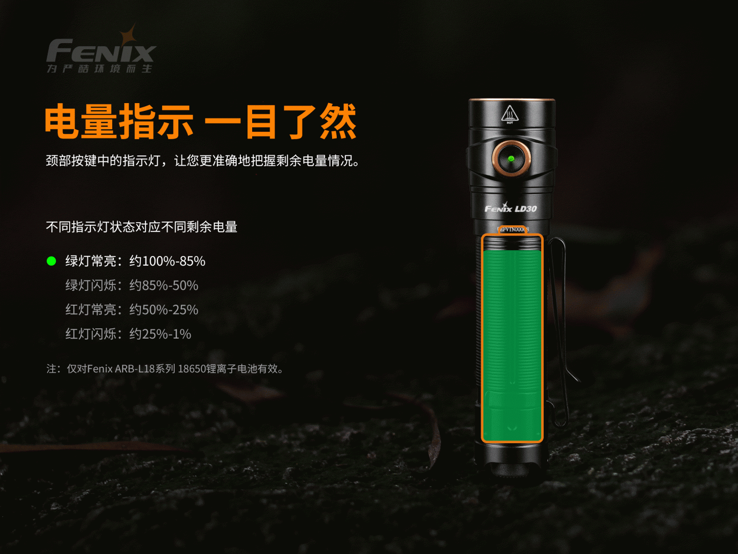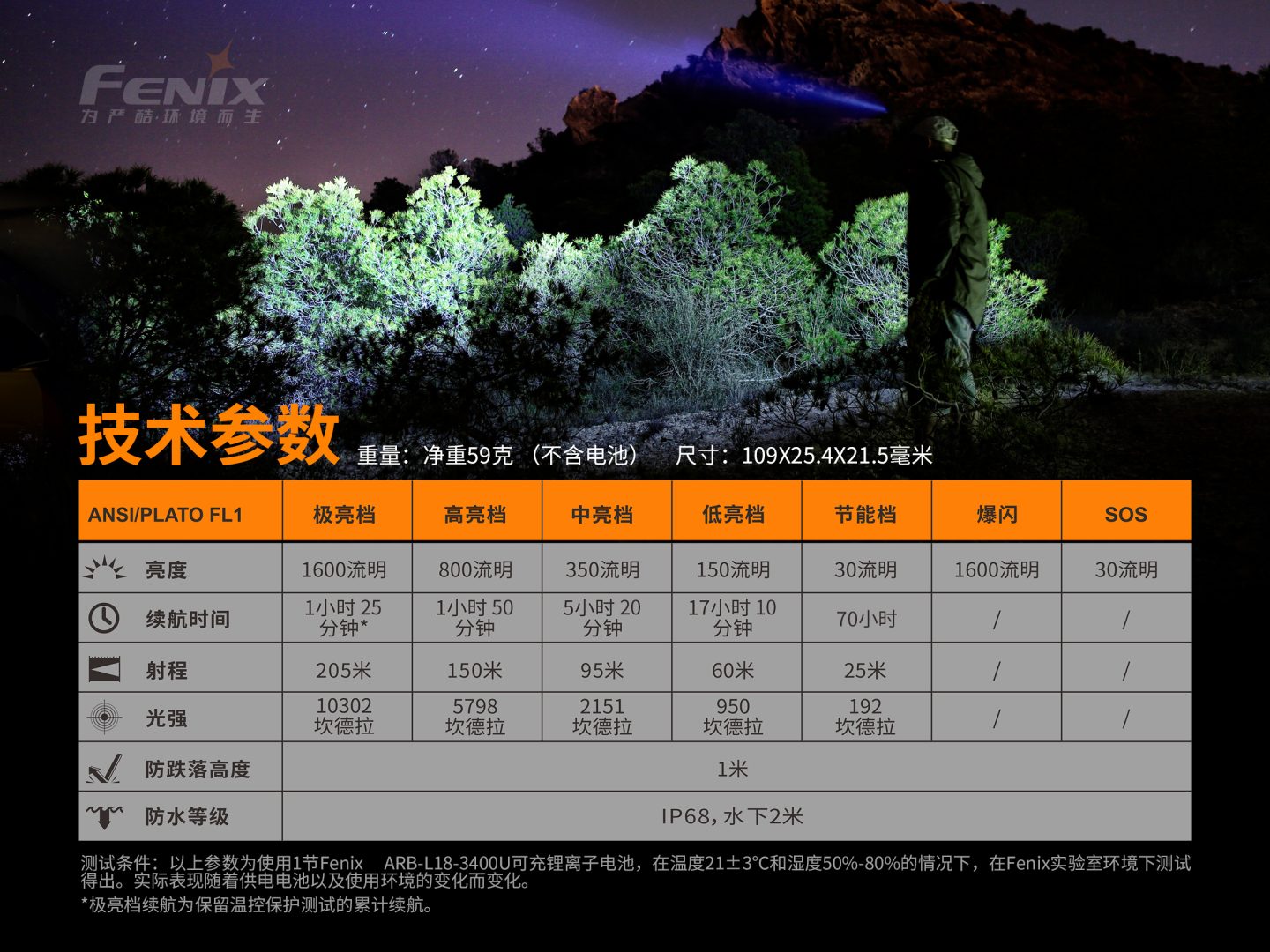 標配1節(jié)Fenix ARB-L18-3400U可充鋰離子18650電池