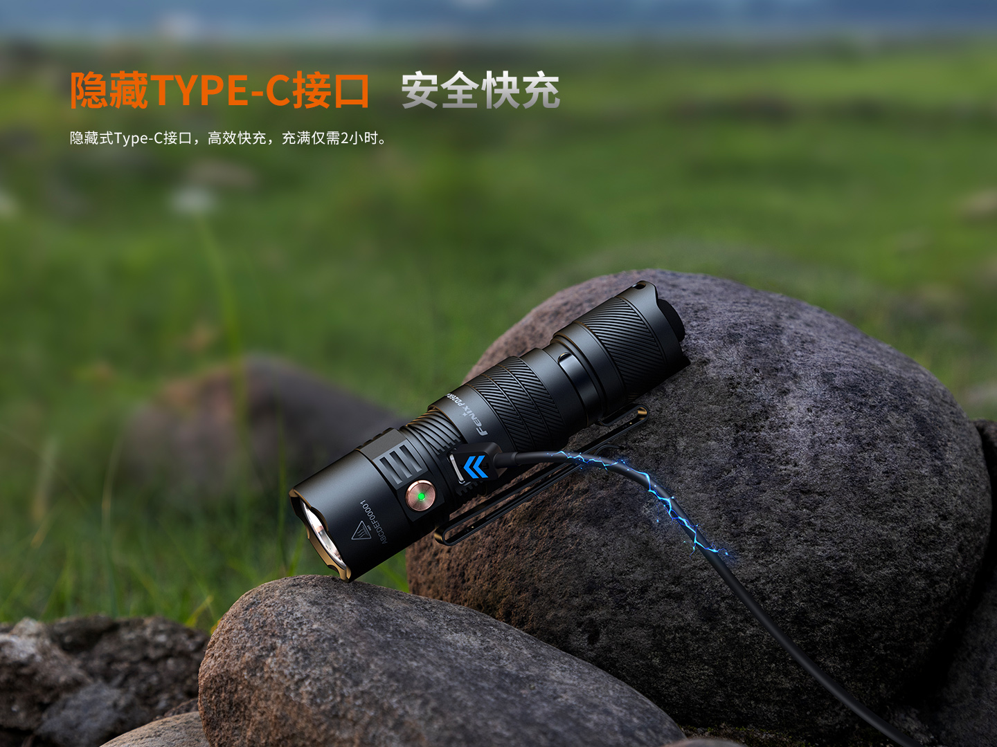 3.手電頸部設(shè)有隱藏式Type-C充電接口,即插即充,方便快捷