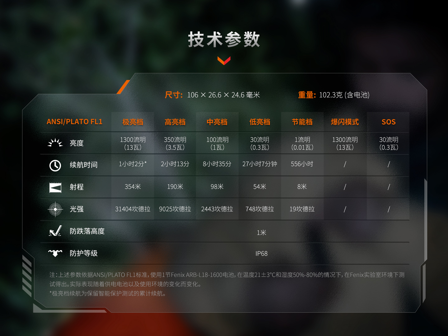 - 1300流明? 射程354米最高亮度1300流明,最遠(yuǎn)射程354米