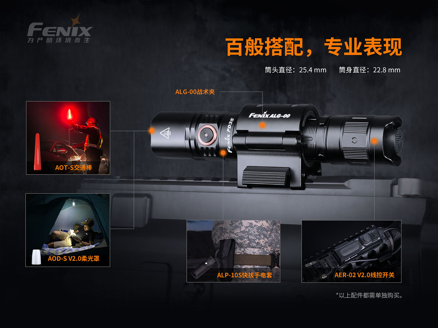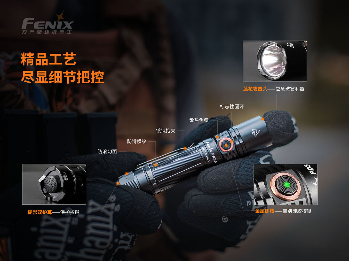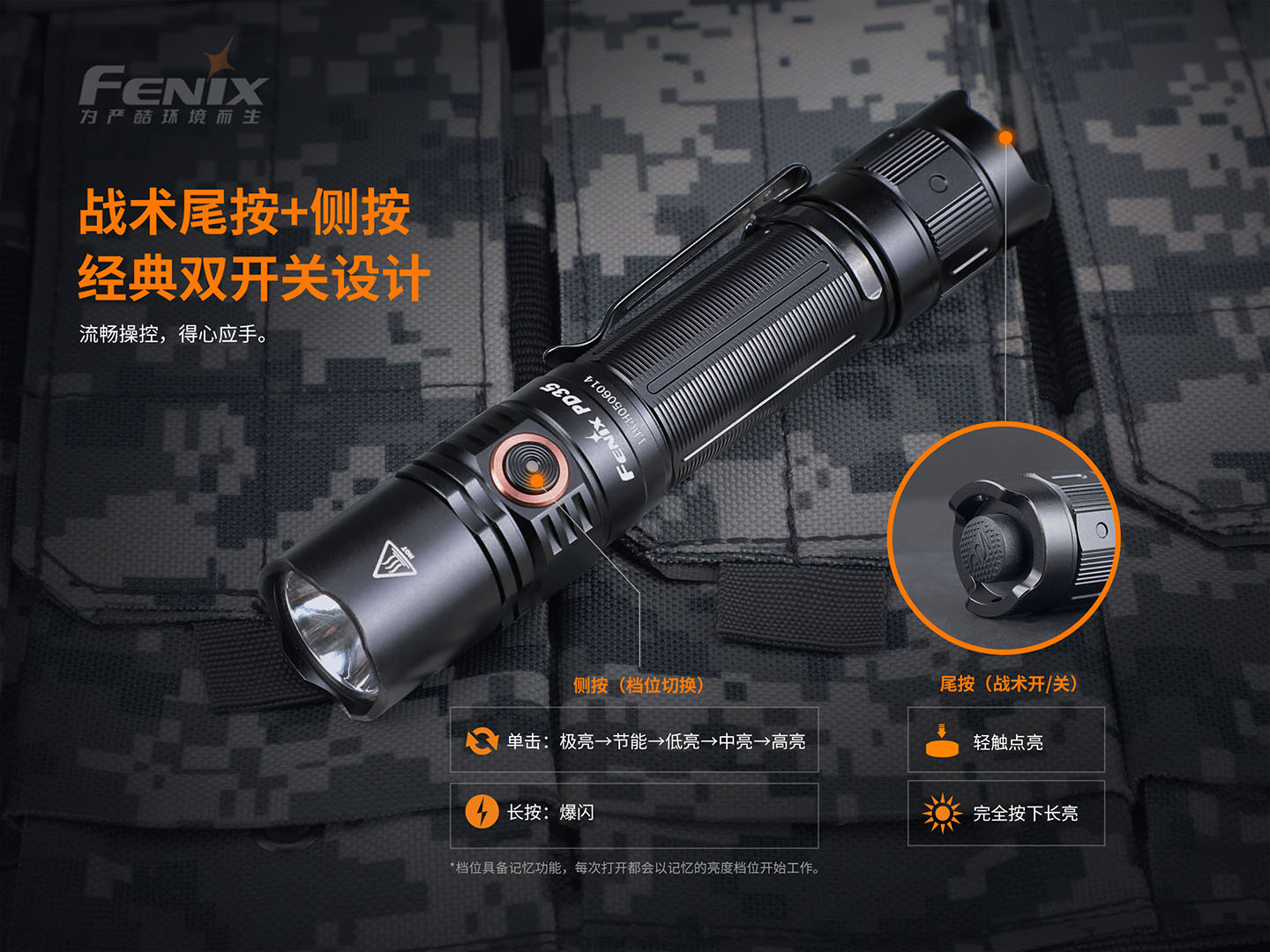 尾部戰(zhàn)術(shù)開關(guān),一觸即亮;頸部調(diào)光按鈕,一鍵換檔