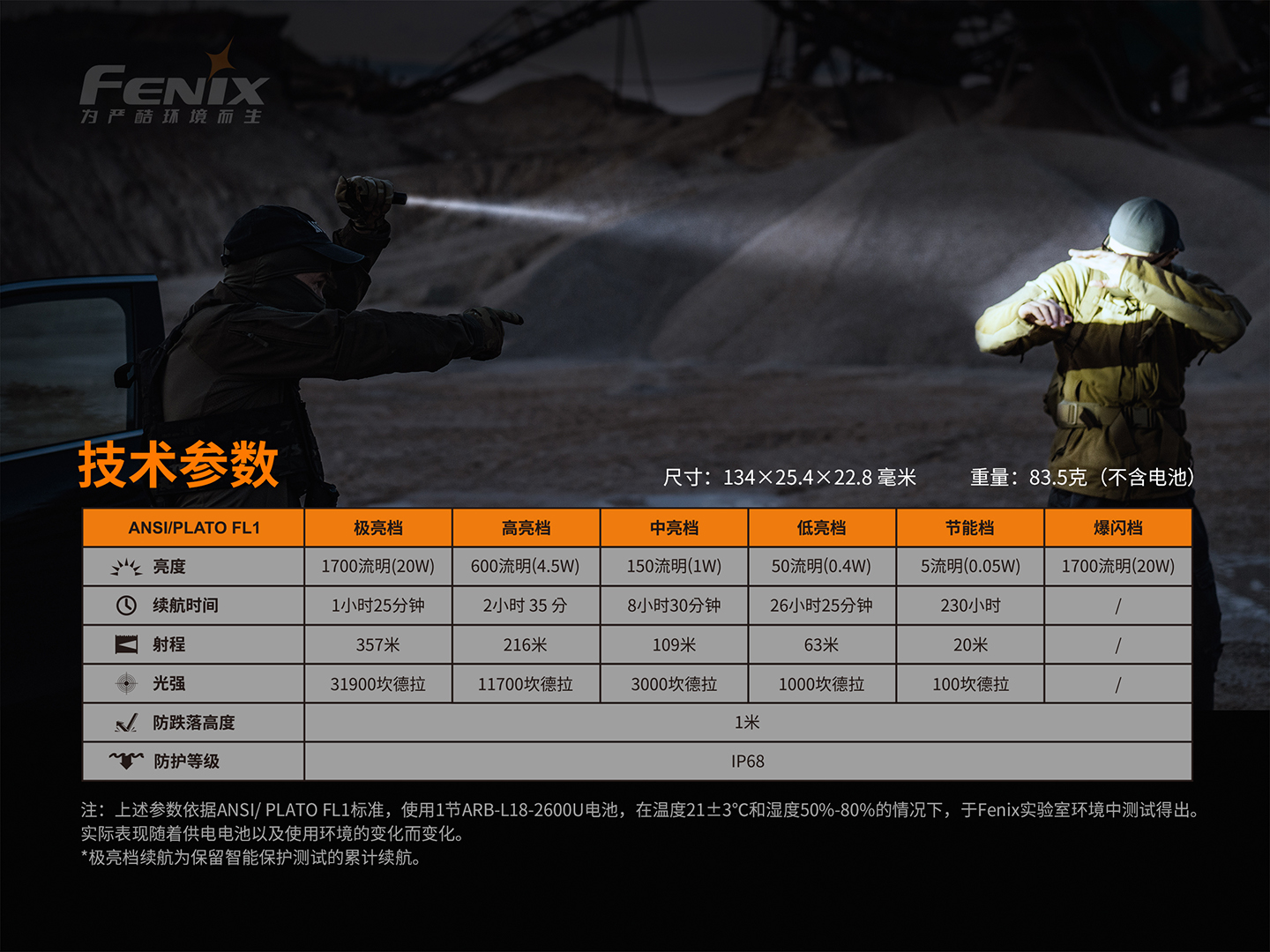 最高亮度1700流明,最遠(yuǎn)射程357米