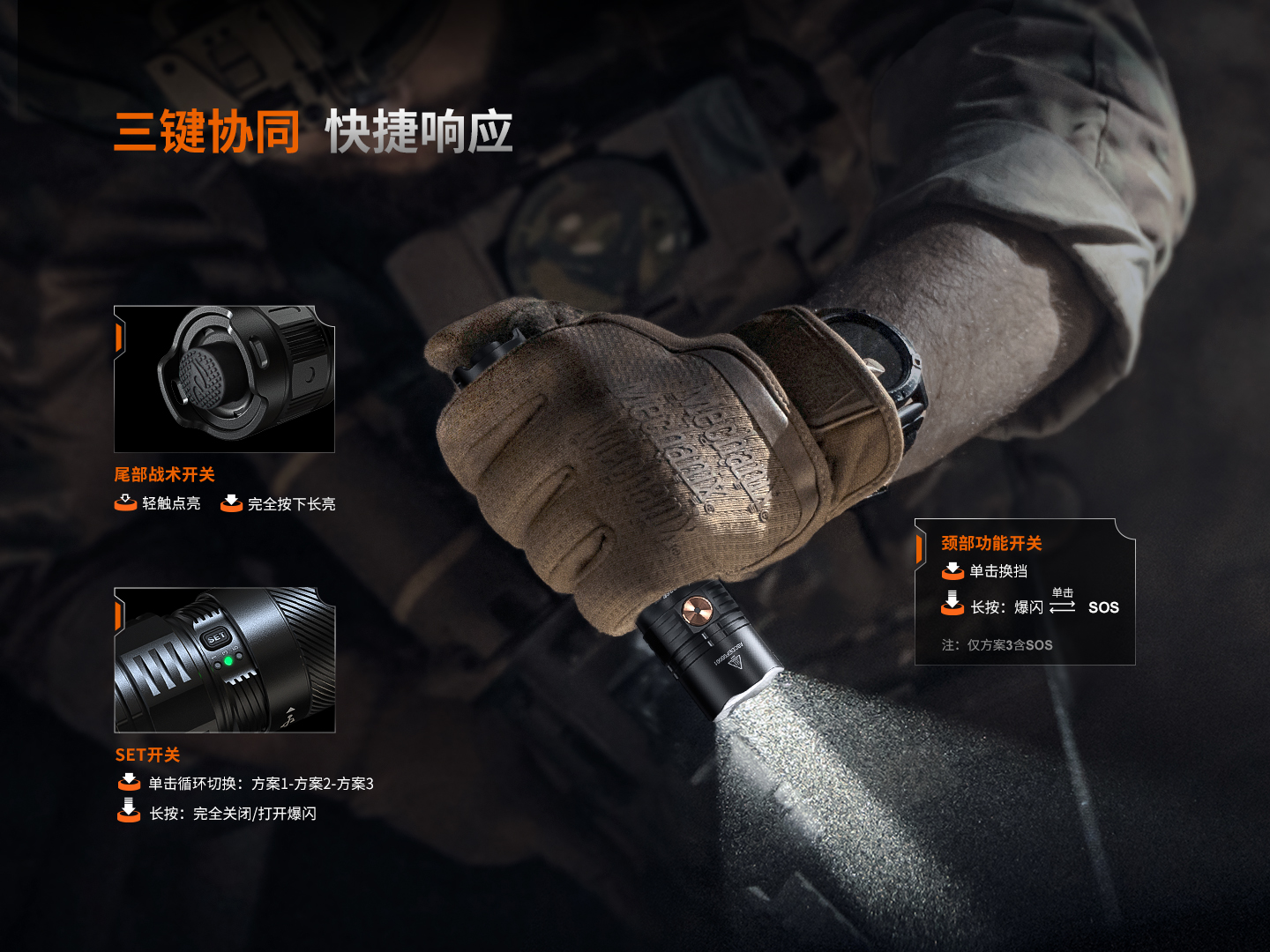 - 尾部戰(zhàn)術(shù)開關(guān)一觸即亮