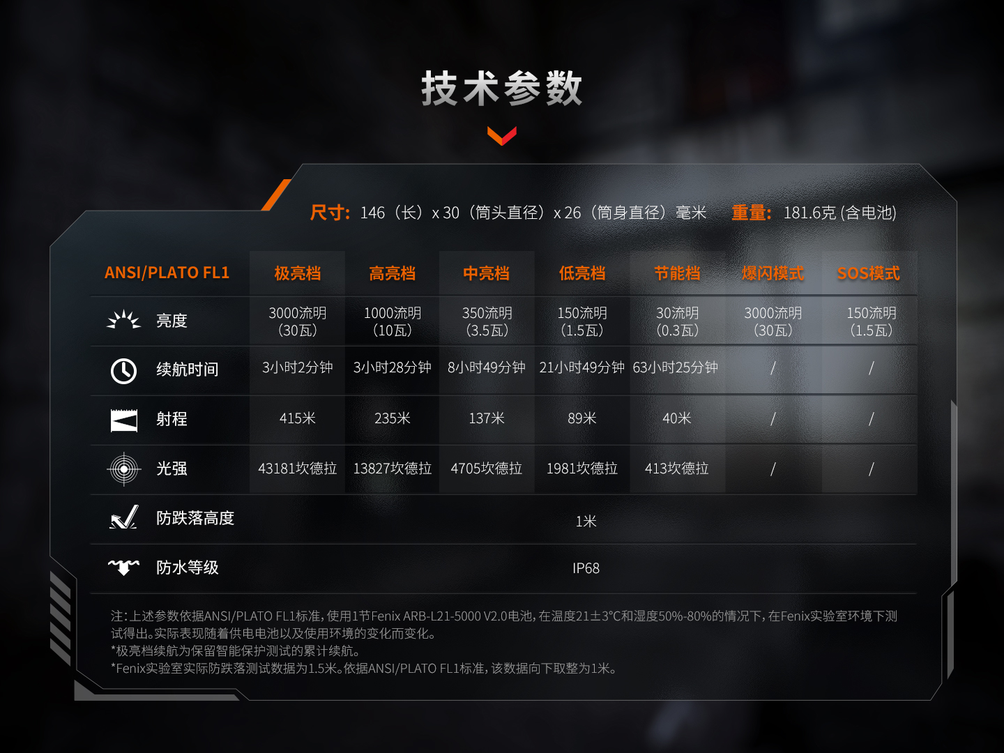 - 3000流明? 射程415米最高亮度3000流明,最遠(yuǎn)射程415米