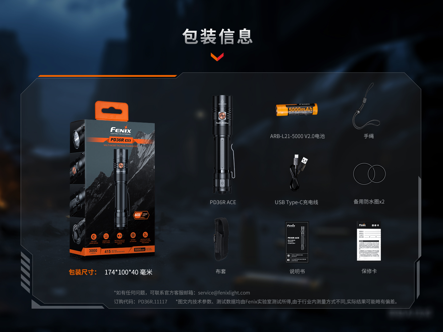 PD36R ACE使用的是Luminus SFT70 Gen2 LED,壽命50000小時(shí);Fenix暫不提供更換LED服務(wù),同時(shí)也不建議使用者自主更換LED,會(huì)有影響產(chǎn)品性能以及造成產(chǎn)品損壞的風(fēng)險(xiǎn)。
