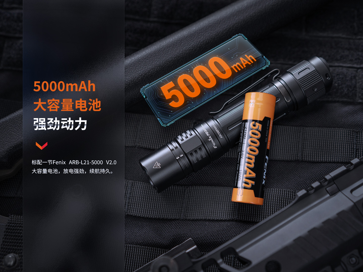 推薦使用1節(jié)Fenix ARB-L21-5000 V2.0電池。兼容Fenix ARB-L21-5000U和Fenix ARB-L21-4000P電池。