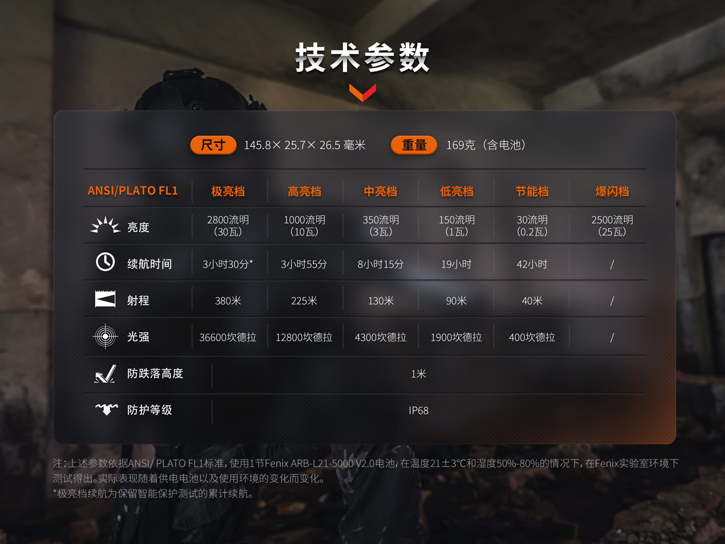 PD36R Pro的極亮檔續(xù)航時間為3小時30分,但是在2800流明的極亮檔工作時,手電會急劇產(chǎn)生熱量,當熱量達到一定程度時手電會主動降低當前亮度來平衡溫度,所以該續(xù)航時間是PD36R Pro在智能保護狀態(tài)下的累計時間,是根據(jù)ANSI / PLATO FL1標準在21±3℃的實驗室環(huán)境下自然放電測試所得的真實數(shù)據(jù)。(具體續(xù)航表現(xiàn)可查看說明書續(xù)航曲線表)