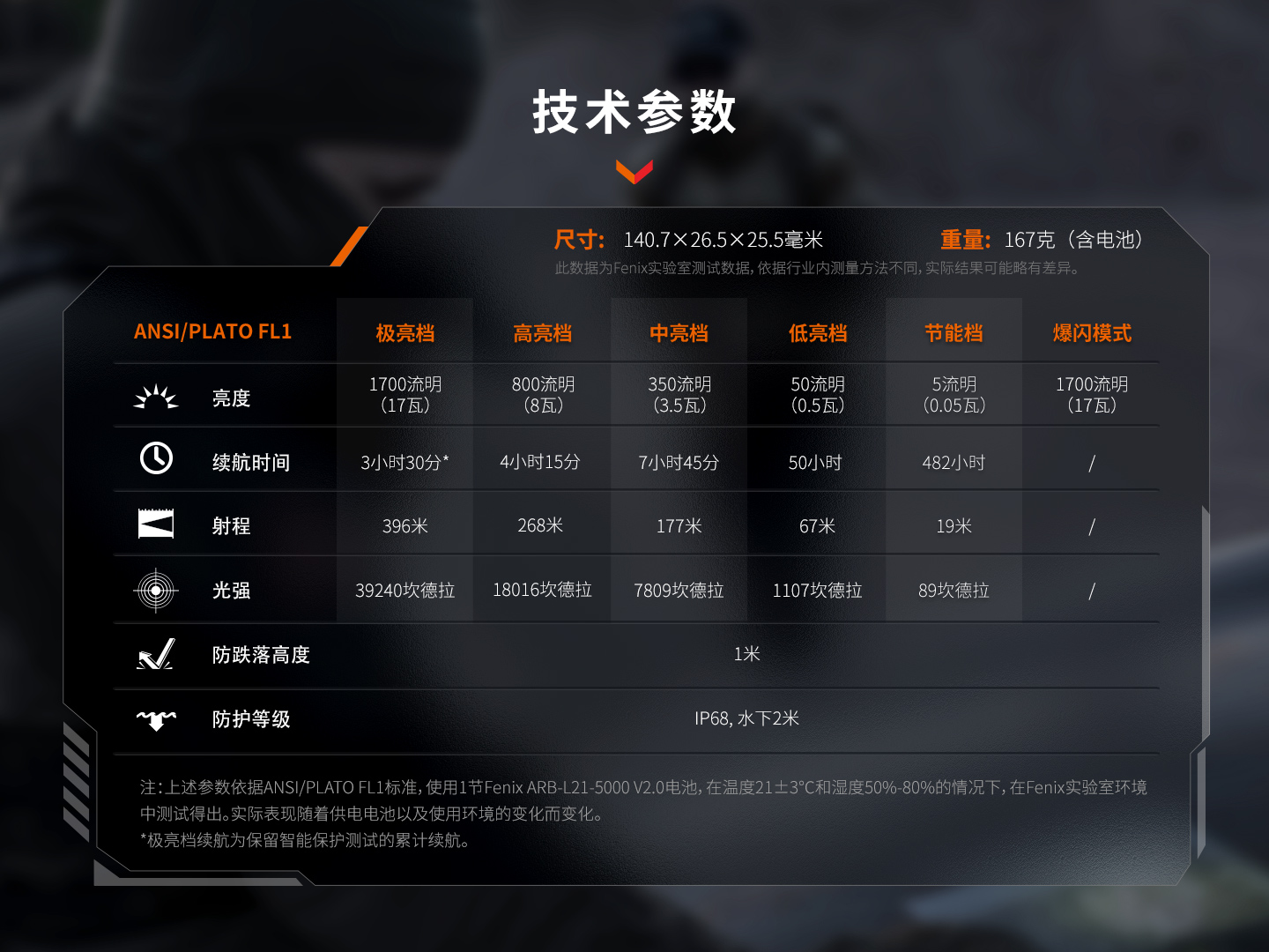 推薦使用Fenix ARB-L21-5000 V2.0。不建議使用其他鋰離子電池,高亮度檔位對電池的電流電壓有一定要求,性能不匹配的電池可能會導(dǎo)致手電無法正常使用。